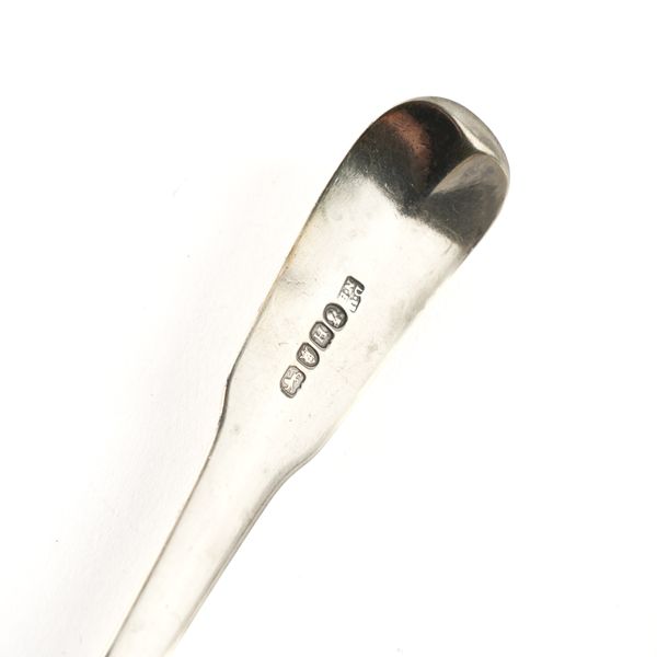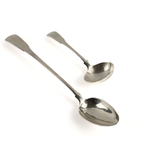 A SILVER BASTING SPOON AND A SILVER SAUCE LADLE (2)