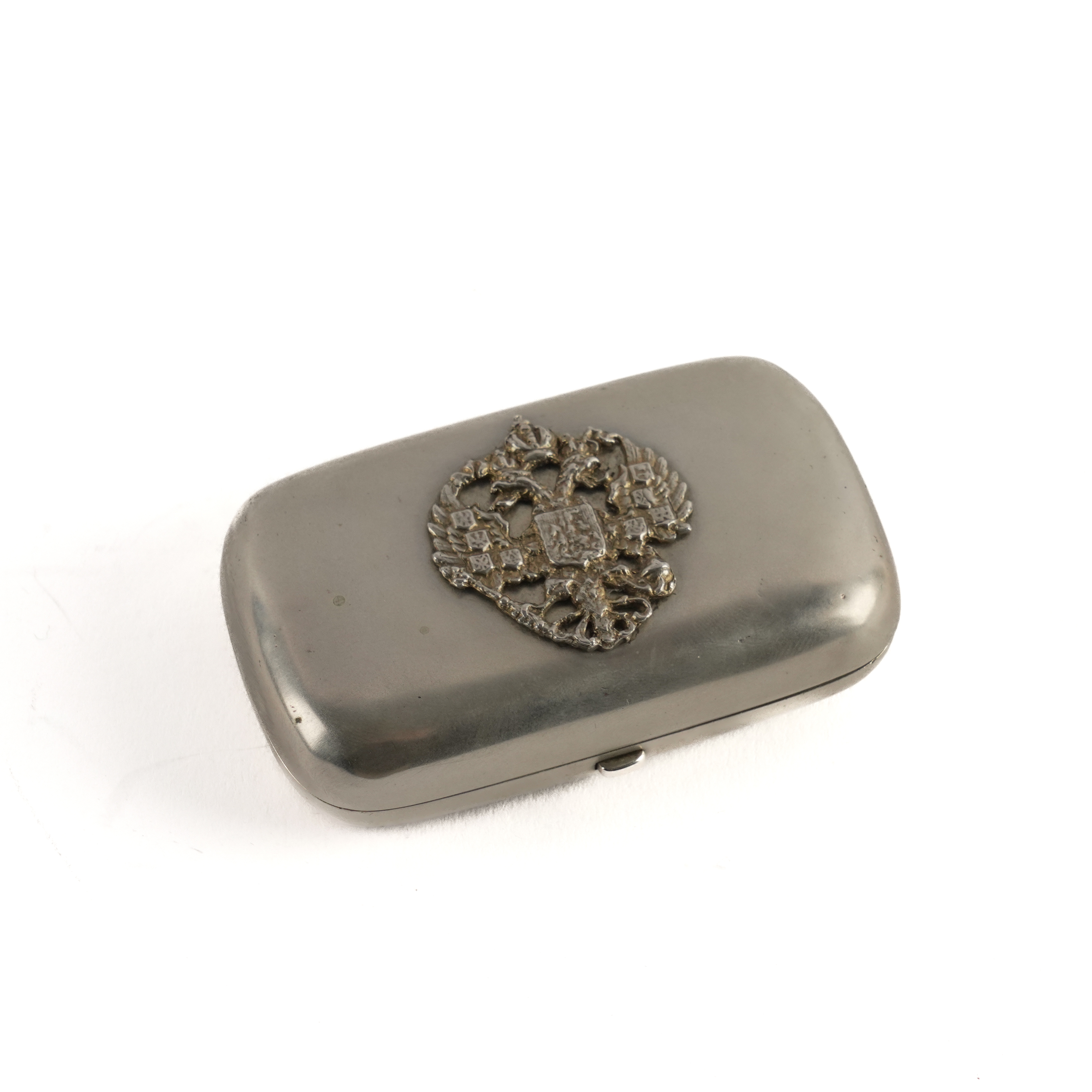 The cover applied with a cast representation of The Imperial Romanov crest, bearing indistinct Russian marks including 84, length 8.5cm, weight 96 grams