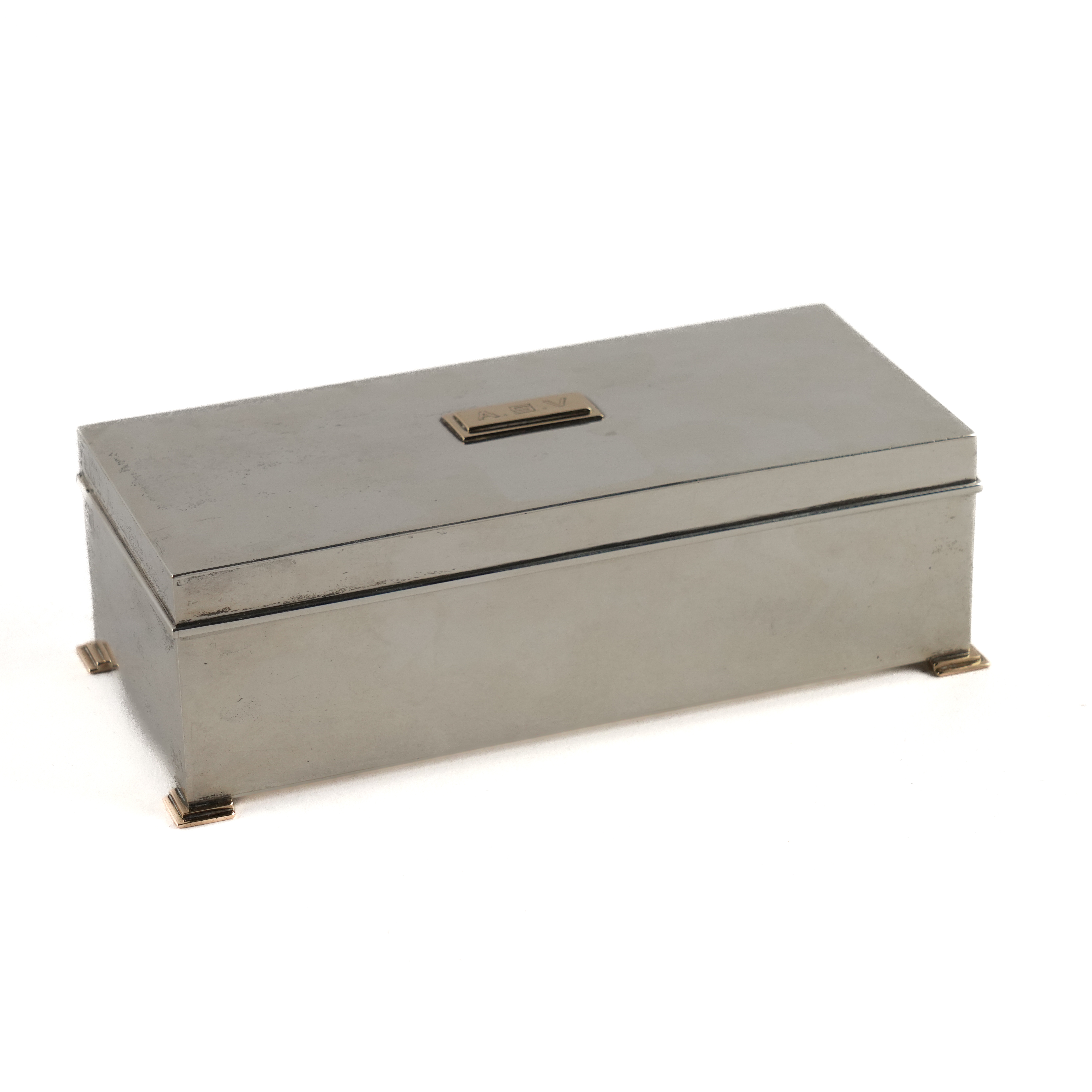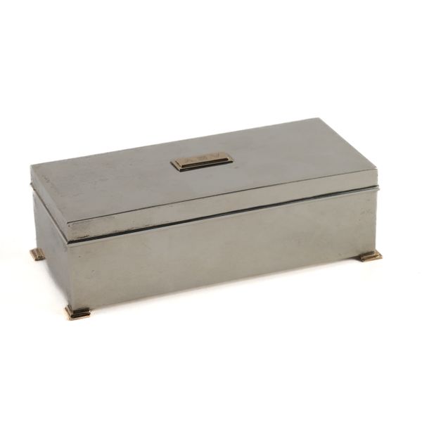 A CARTIER GOLD MOUNTED AND STERLING RECTANGULAR CIGAR BOX