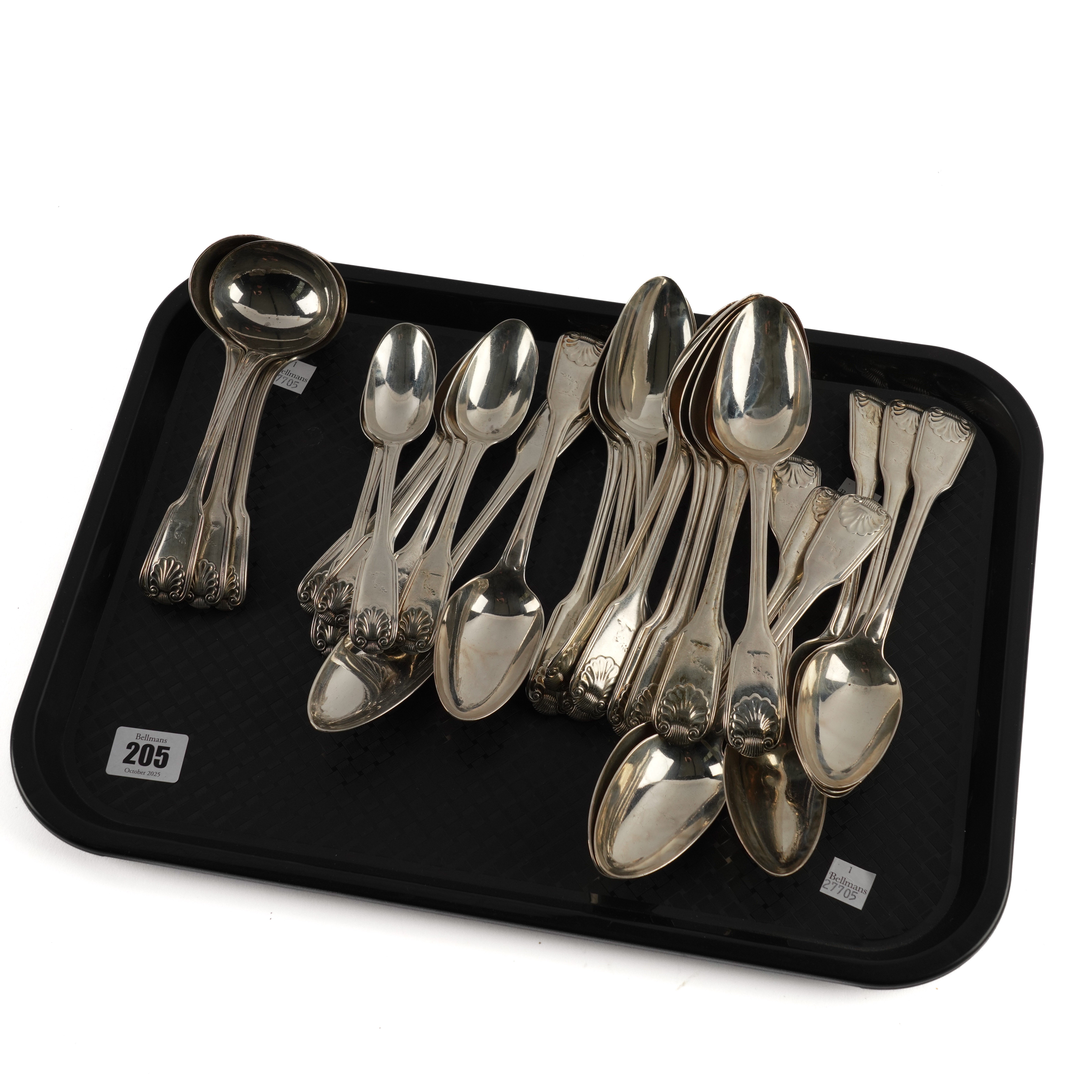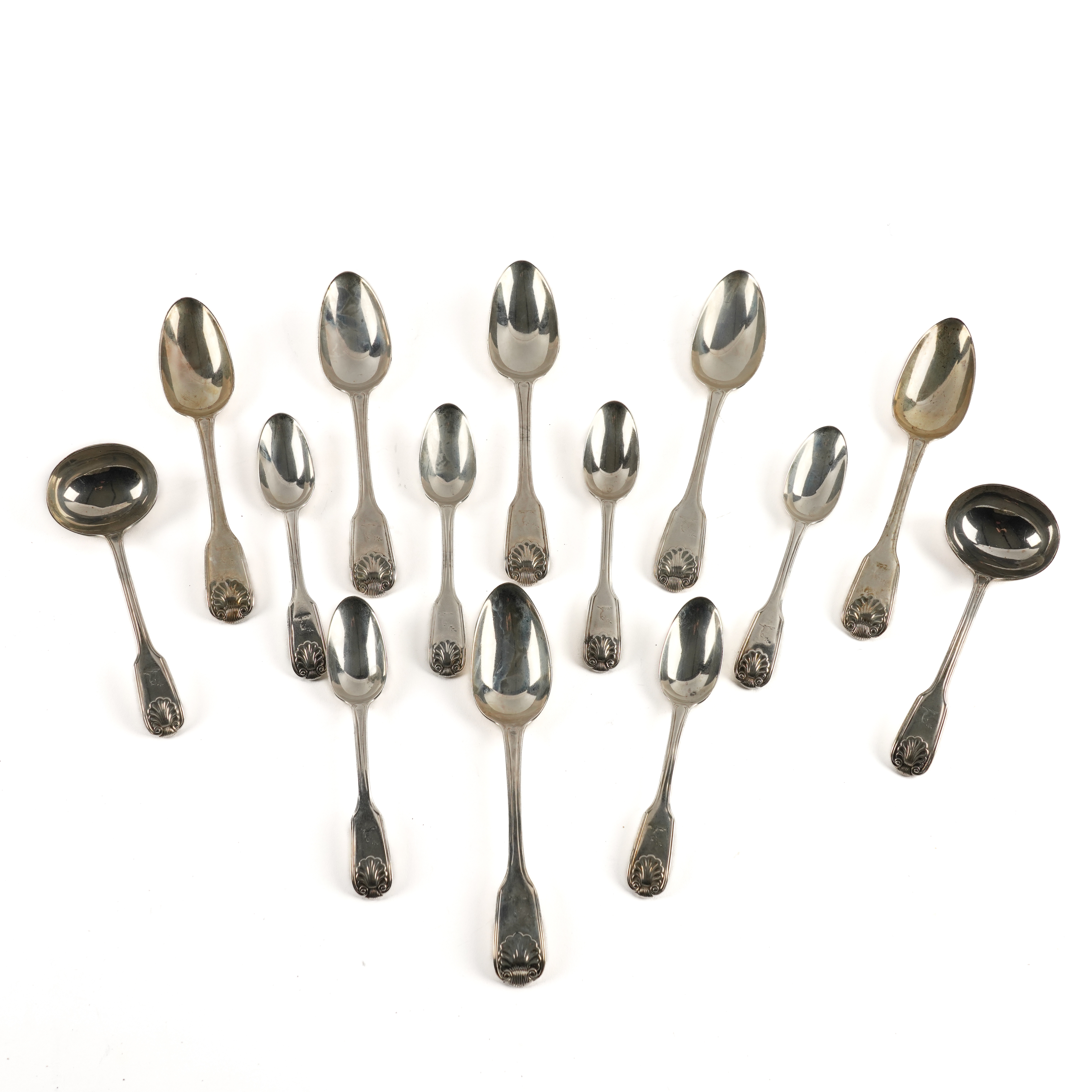 A WILLIAM IV SILVER DOUBLE STRUCK PIDDLE THREAD AND SHELL PATTERN PART TABLE SERVICE (28)
