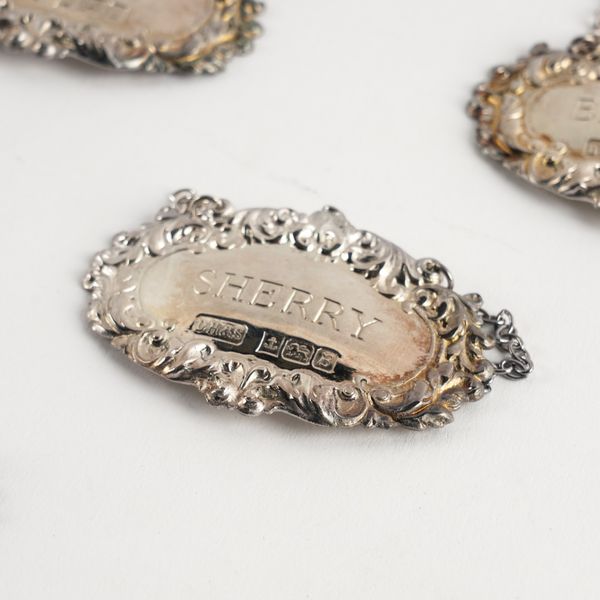 Comprising; five of matching design, Birmingham 1976, three in a cut cornered rectangular design, Birmingham 1998, two similar Gin and Vermouth and two plain cut cornered rectangular, comprising Whisky and Gin, Birmingham 2006, combined weight 156 grams