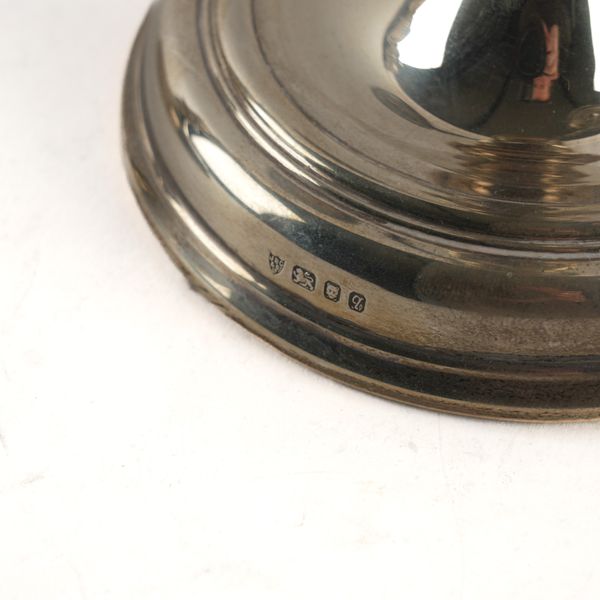 Each raised on a circular foot, loaded, all London 1971, height of candelabra 28.5cm, height of sample candlestick 18.5cm