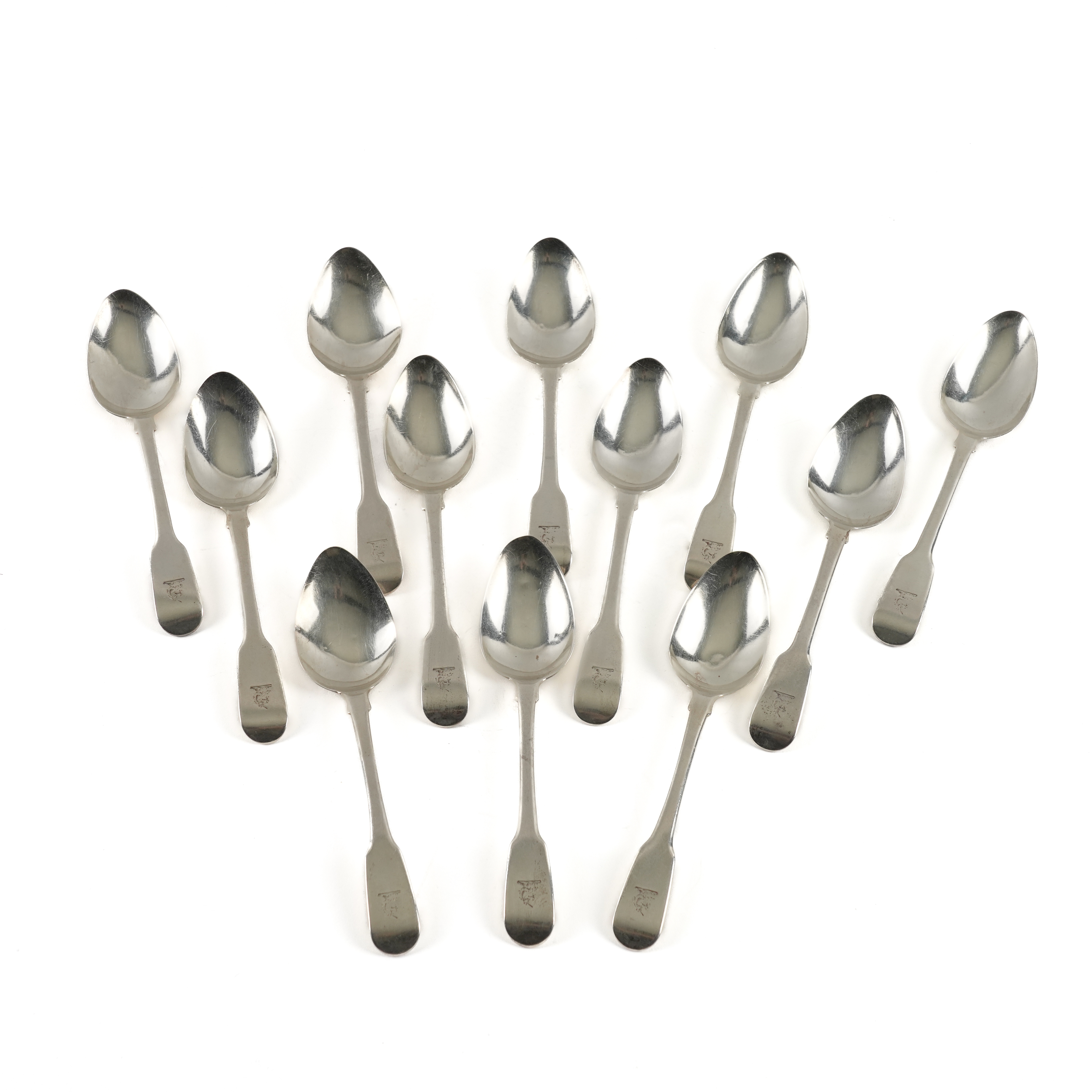 Ten London 1826 and two London 1825, all engraved with a matching crest, weight 414 grams
