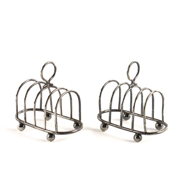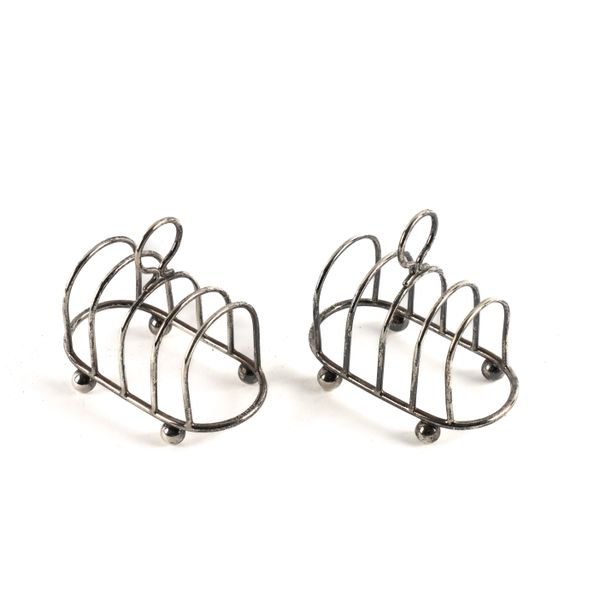 A PAIR OF SILVER TOASTRACKS AND A SILVER SUGAR CASTER (3)