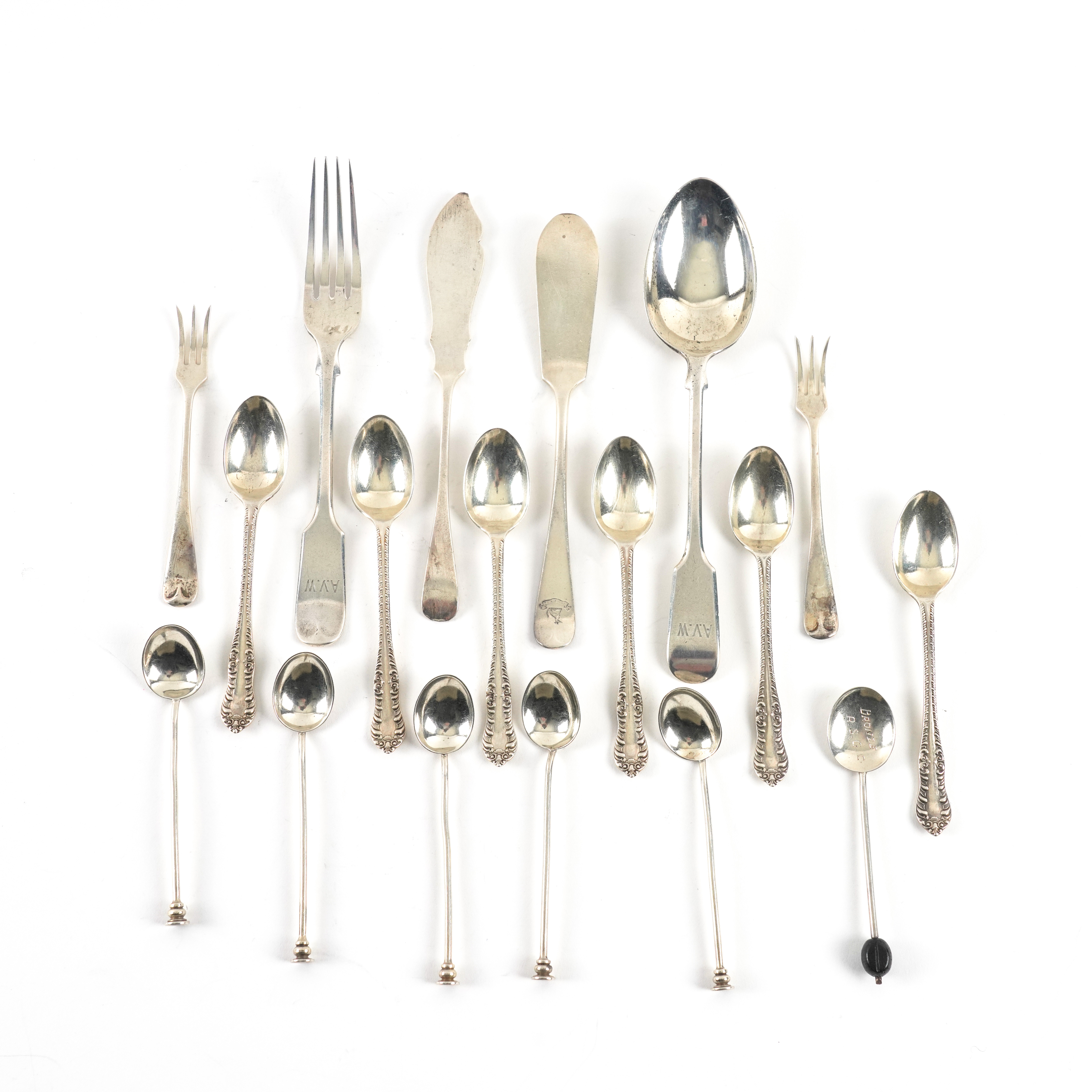 A SET OF SIX SILVER TEAPSOONS AND FURTHER SILVER TABLE FLATWARE (18)
