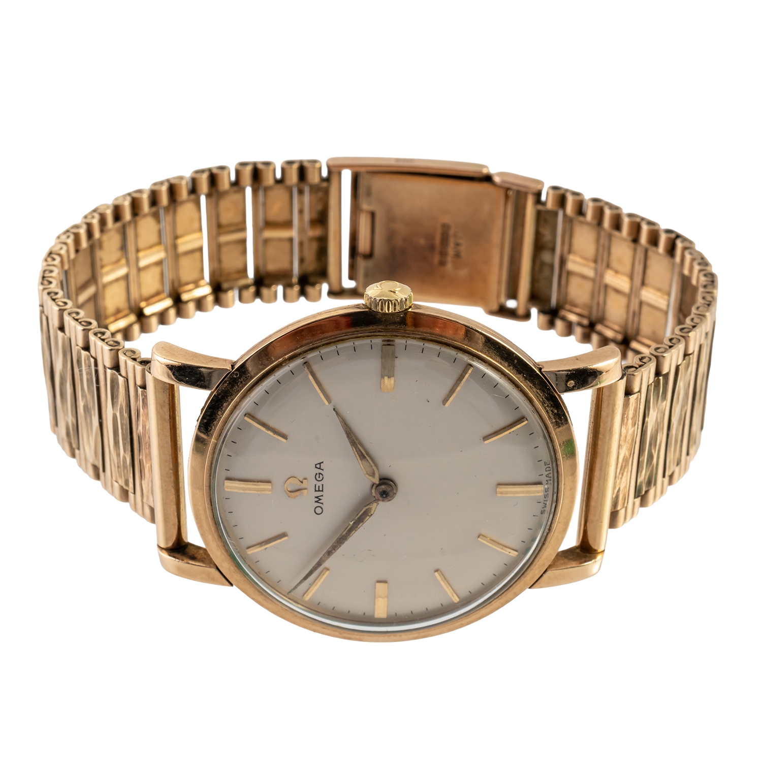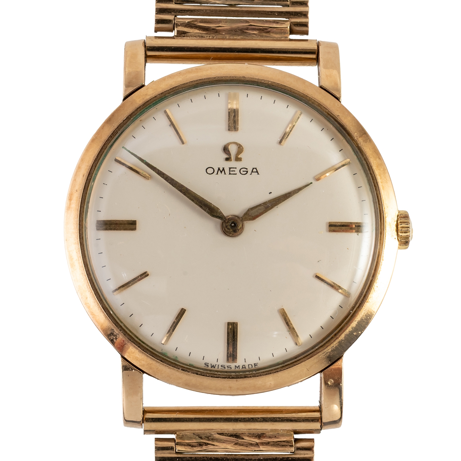 AN OMEGA 9CT GOLD WRISTWATCH WITH 9CT GOLD BRACELET