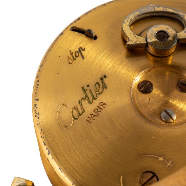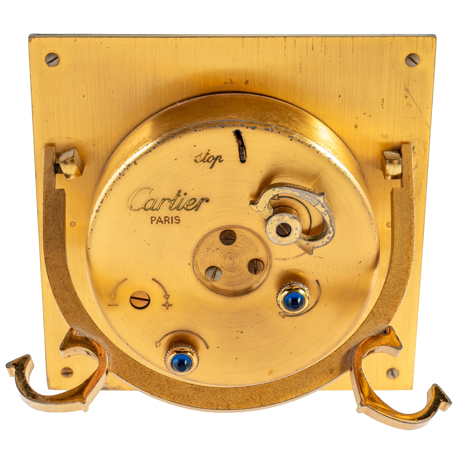 A CARTIER TRAVEL ALARM CLOCK AND CASE