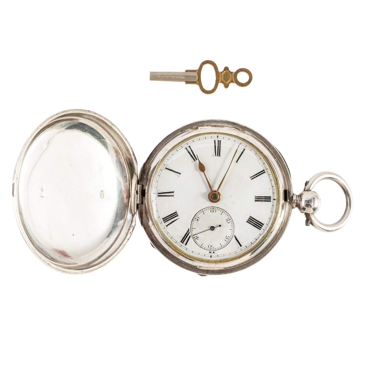 A GENTLEMAN'S SILVER CASED, KEY WIND, HUNTING CASED POCKET WATCH