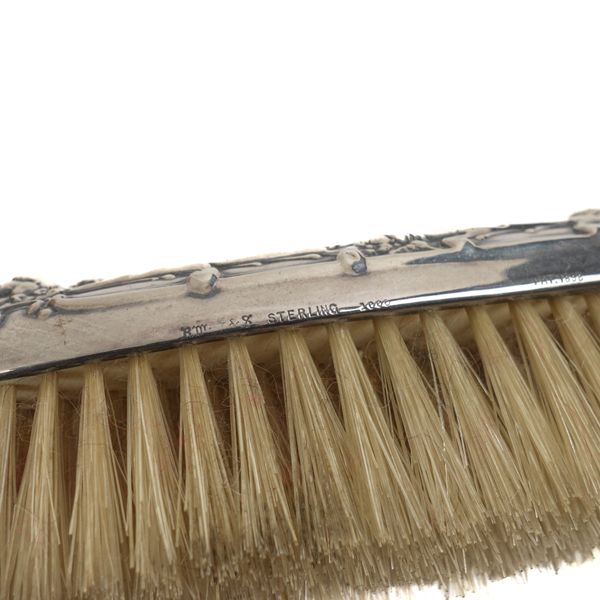 A STERLING SILVER MOUNTED FIVE PIECE DRESSING SET AND A PAIR OF SILVER MOUNTED CLOTHES BRUSHES (7)