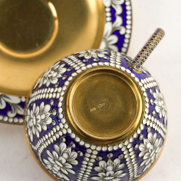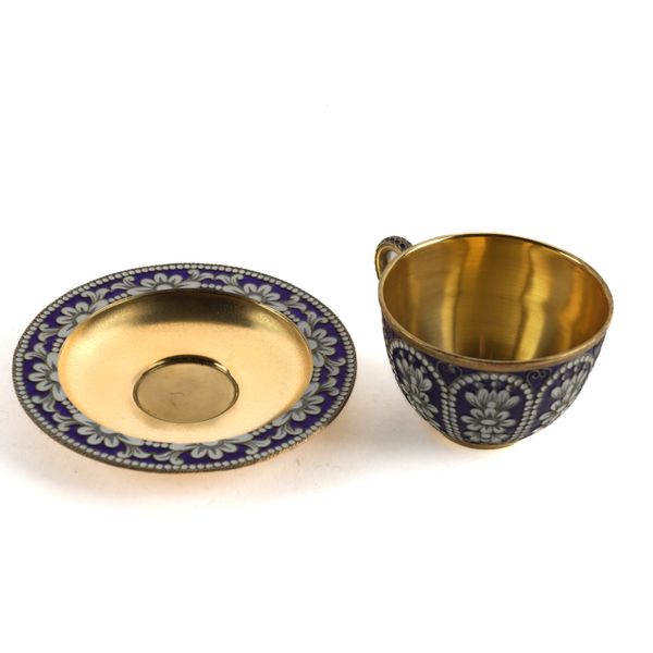 A RUSSIAN STYLE CLOISONNE ENAMELLED AND GILT TEA SET (8)