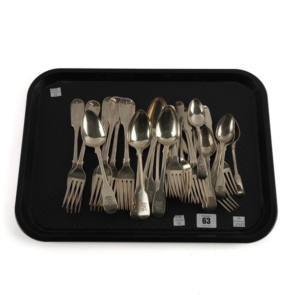 A GROUP OF SILVER FIDDLE PATTERN TABLE FLATWARE (48)