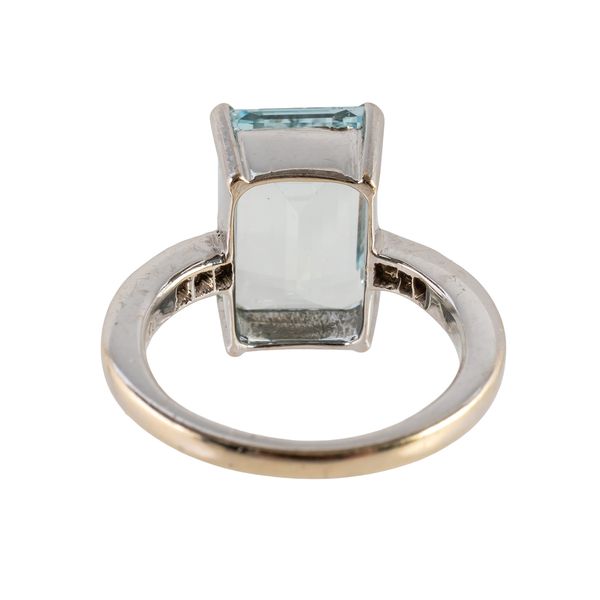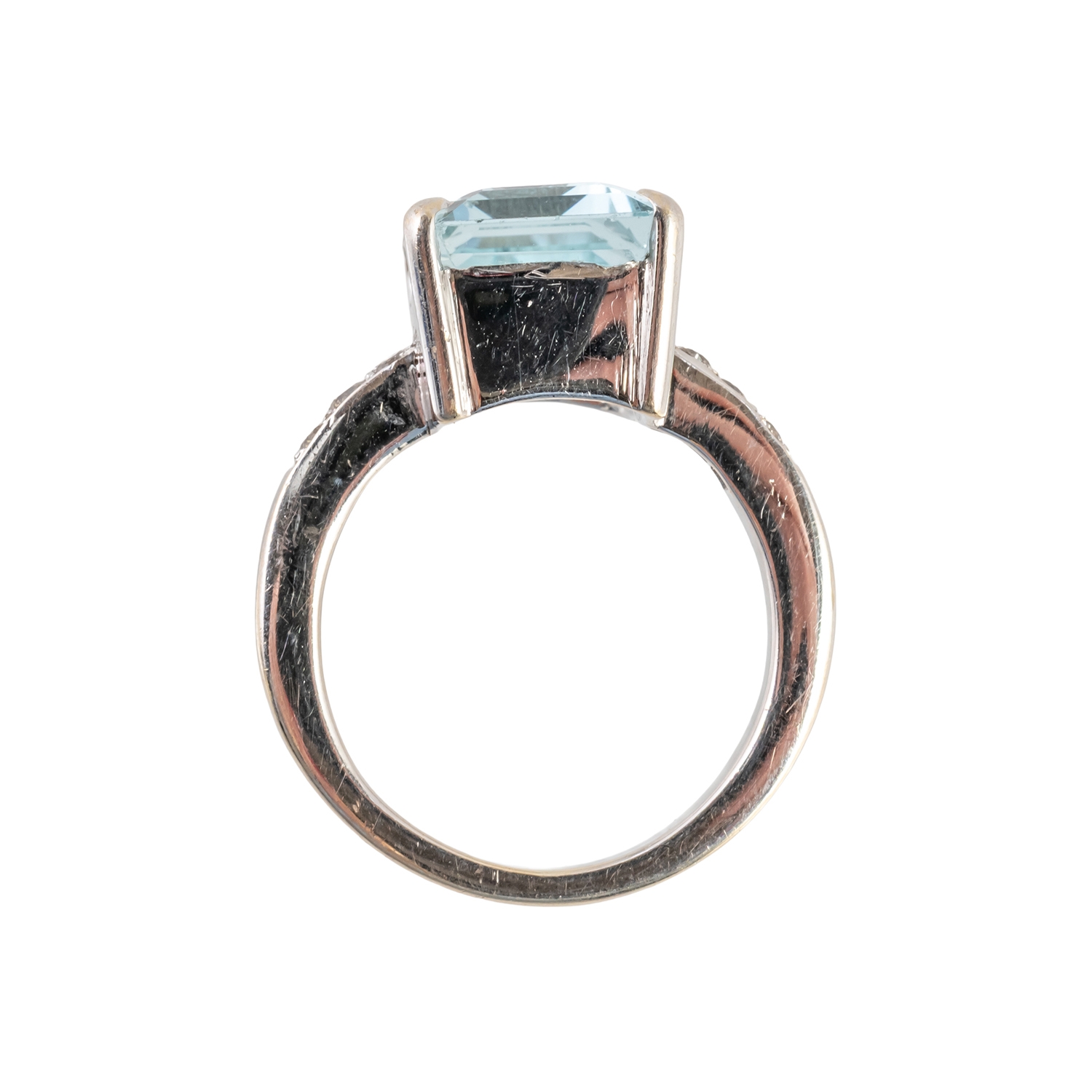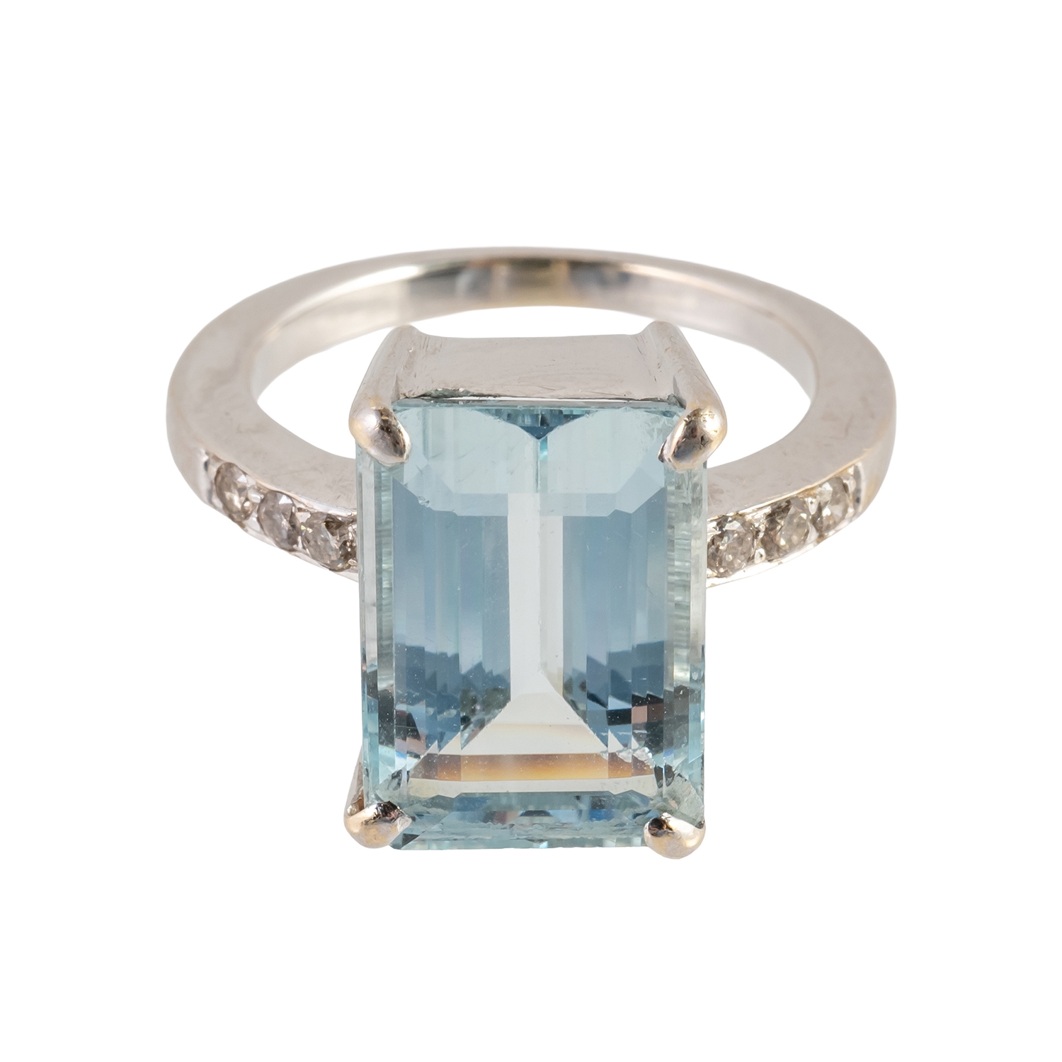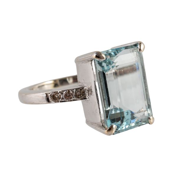 A WHITE GOLD, AQUAMARINE AND DIAMOND RING