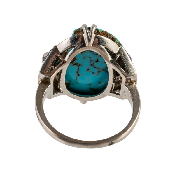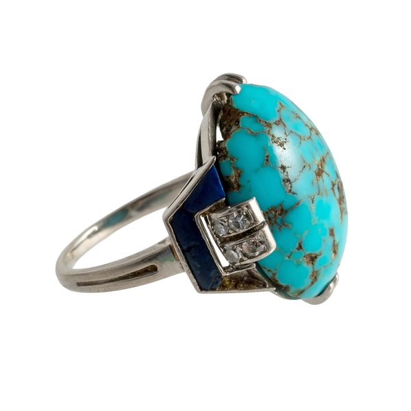 A FRENCH BOUCHERON PLATINUM, TURQUOISE, DIAMOND AND LAPIS LAZULI RING