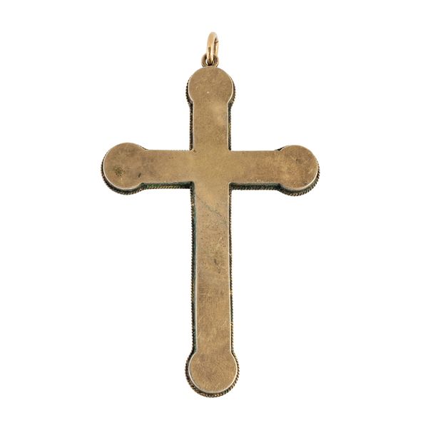 Probably Italian, unmarked, 4.2cm across, length excluding suspension loop 7.5cm