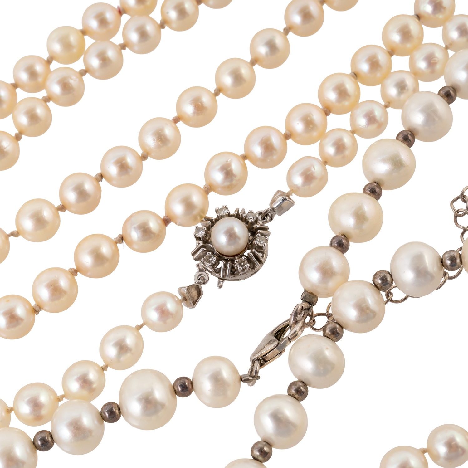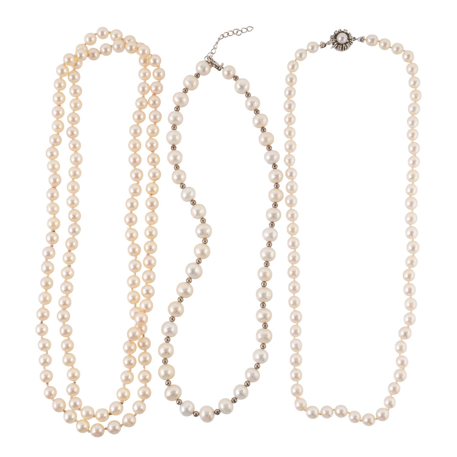 THREE SINGLE ROW NECKLACES OF CULTURED PEARLS (3)
