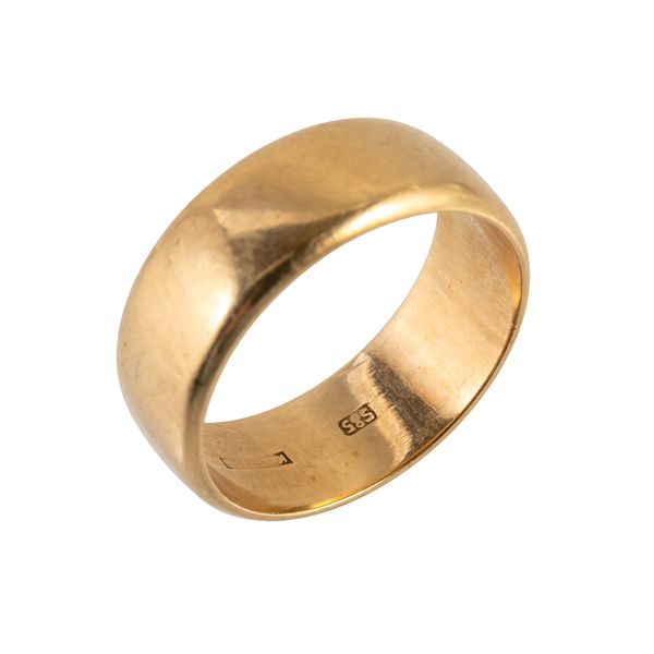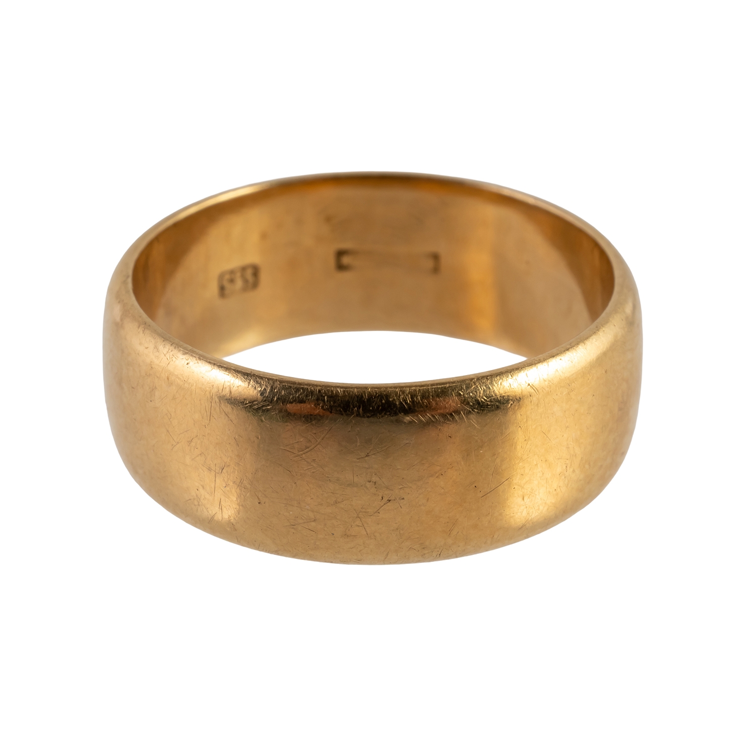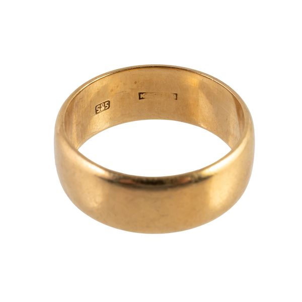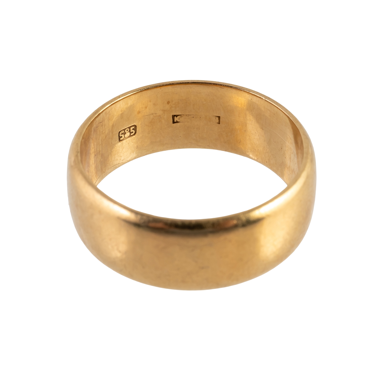 Of plain form, detailed 585, ring size M½, weight 5.9 grams