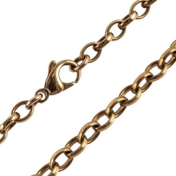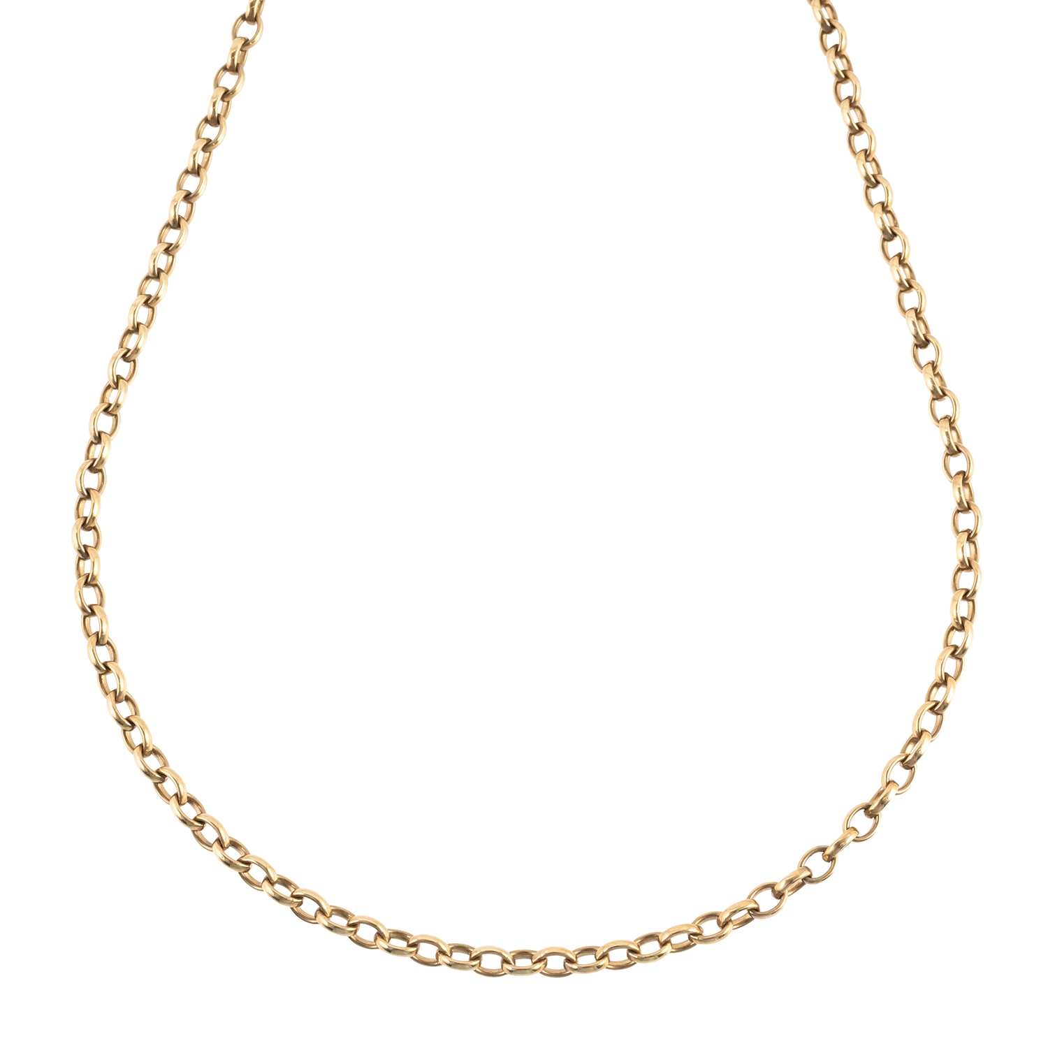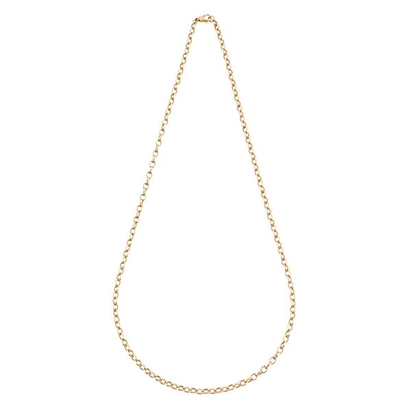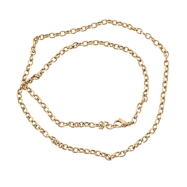 On a sprung hook shaped clasp, detailed 9 CT, length 62.5cm, weight 24.7 grams
