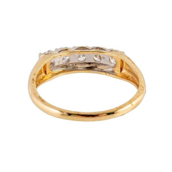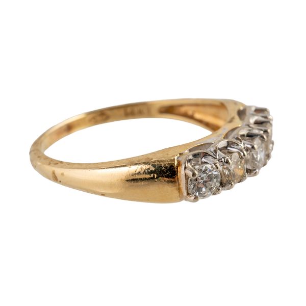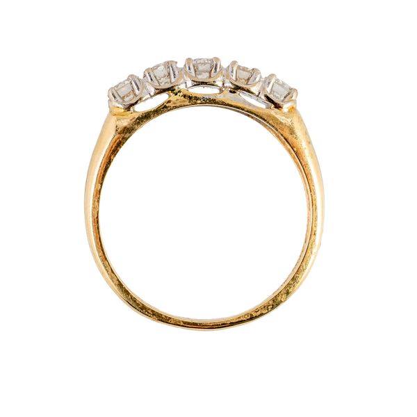 Set with round brilliant cut diamonds in claw settings, mounted in 14ct gold, size N½, gross weight 2.7 grams