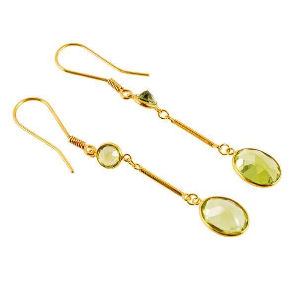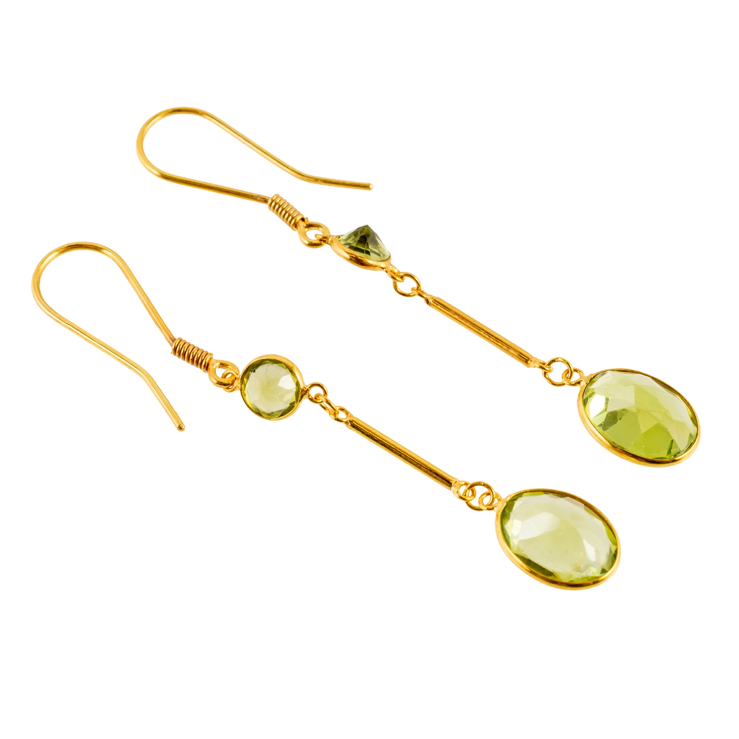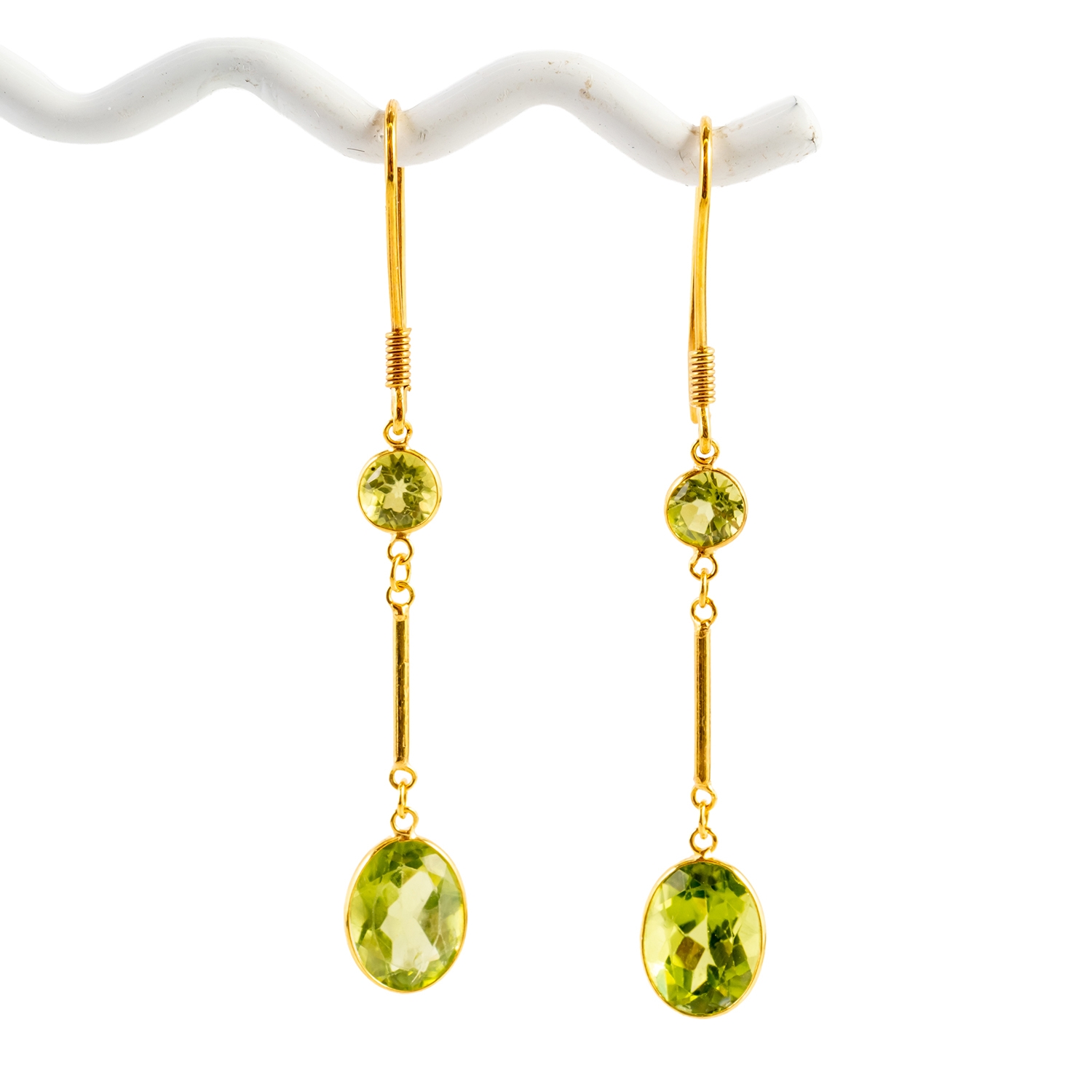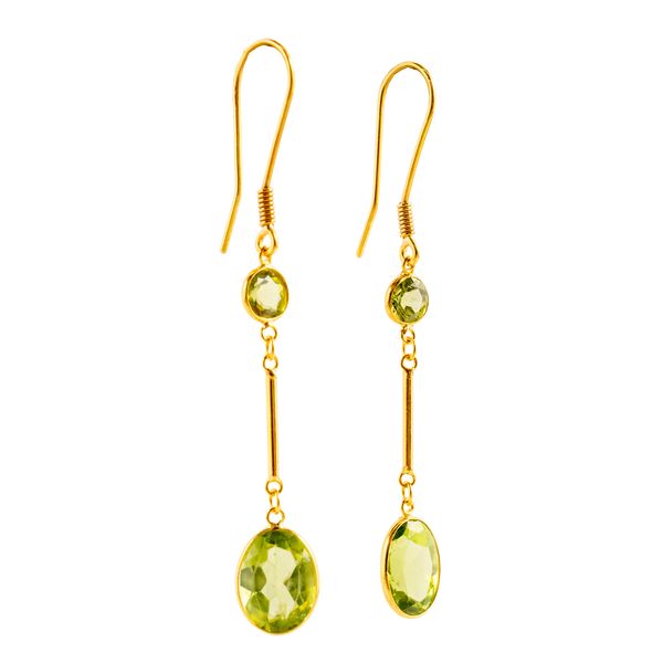 With a round cut peridot suspended from a hook, followed by a bar and further oval cut peridot in unmarked gold, measuring 22.8cm in length, gross weight 1.3 grams