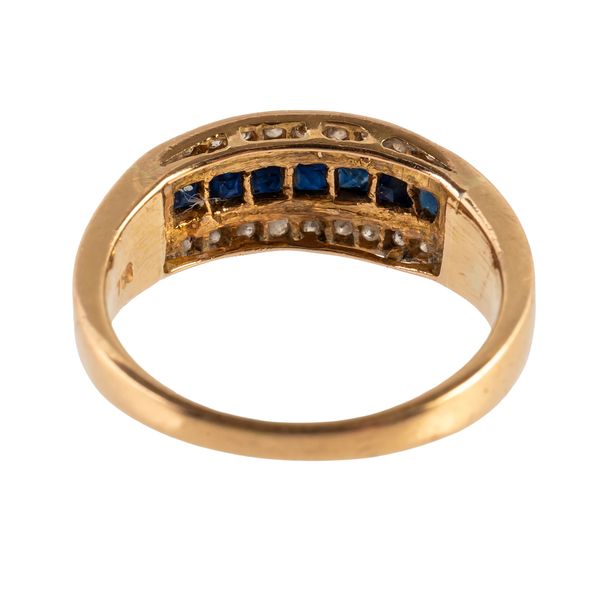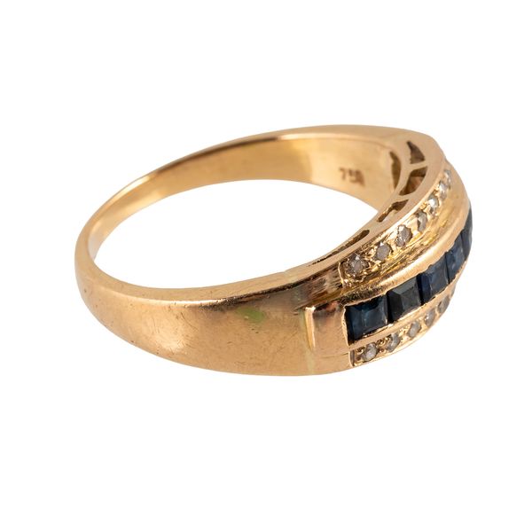 A GOLD, SAPPHIRE AND DIAMOND RING