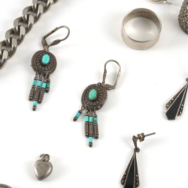 A GROUP OF SILVER AND SILVER JEWELLERY (13)