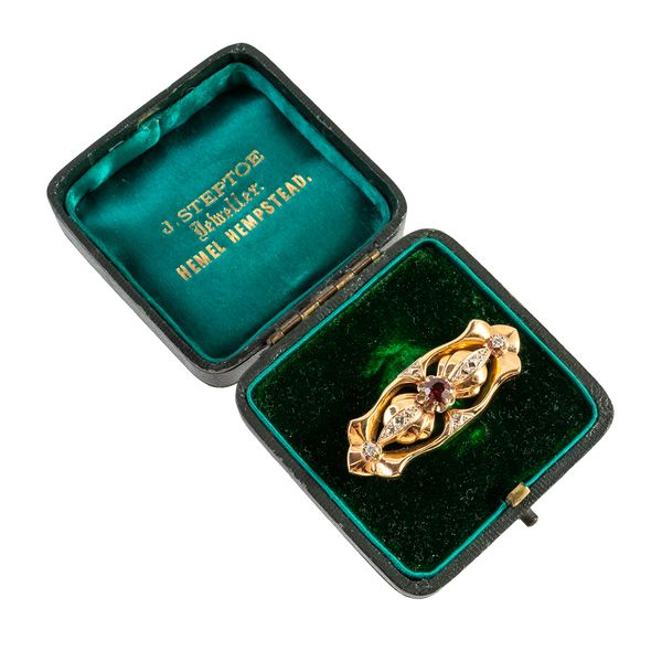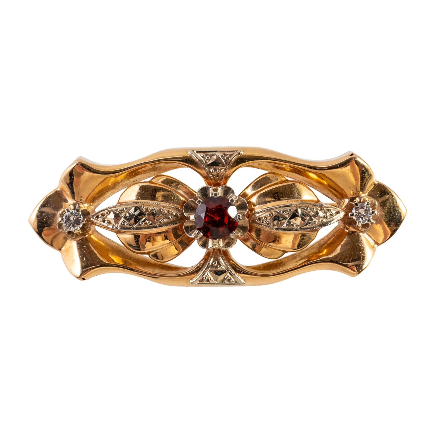 A FRENCH GOLD, DIAMOND AND GARNET BROOCH (2)