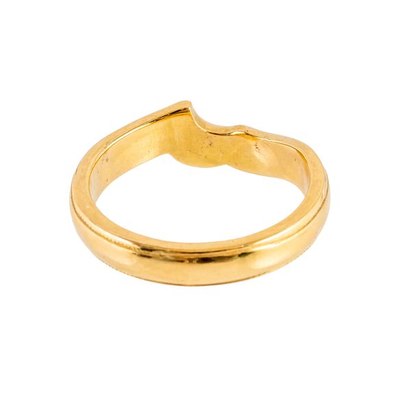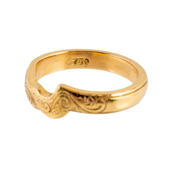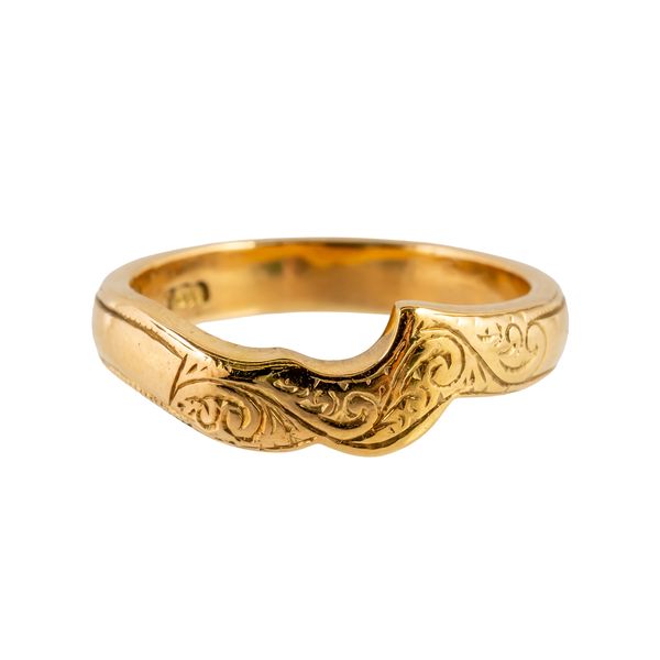 With carved detailing to the top of the band, in 18ct gold, size M, gross weight 5.3 grams