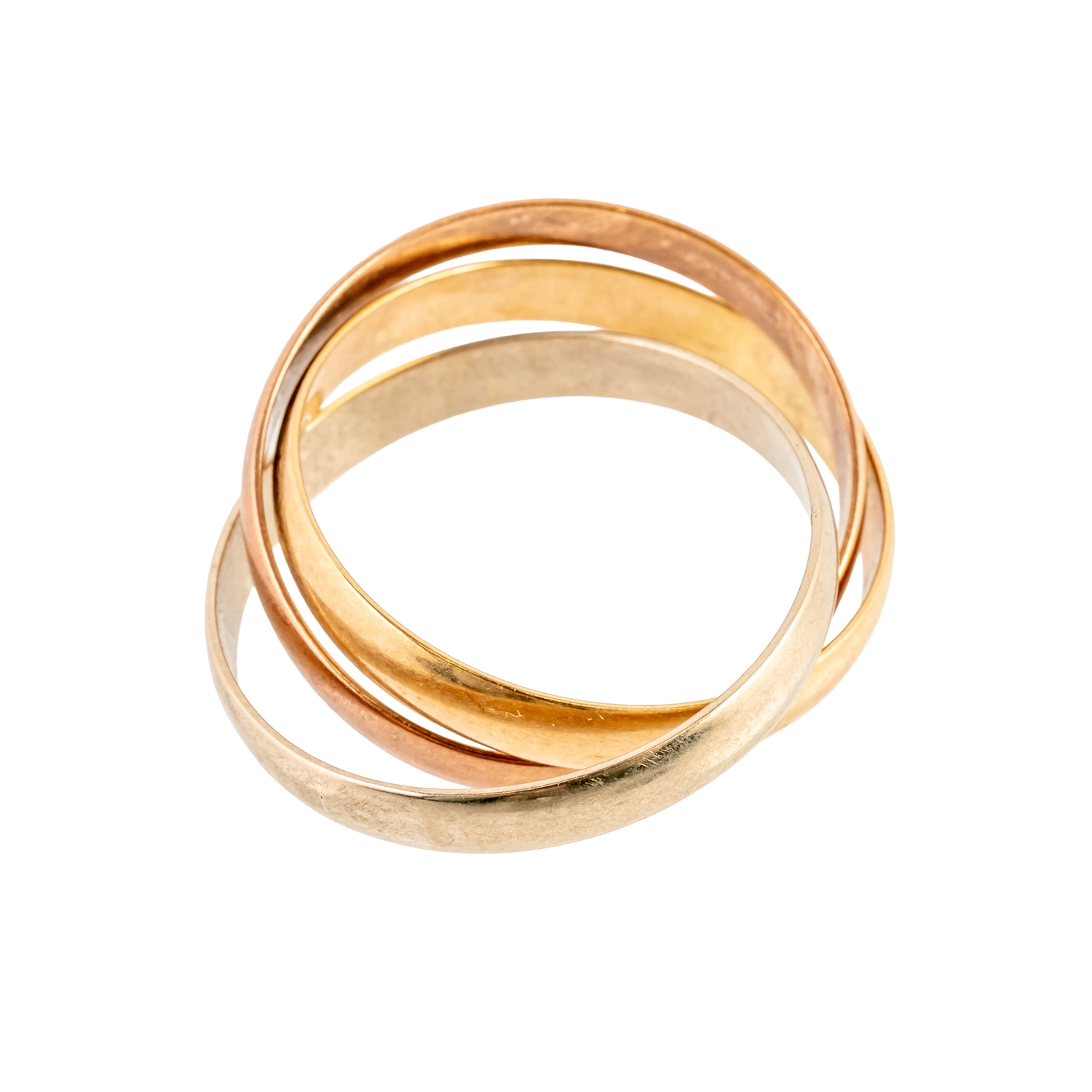A 9CT THREE COLOUR GOLD TRIPLE BAND RUSSIAN STYLE WEDDING RING (2)