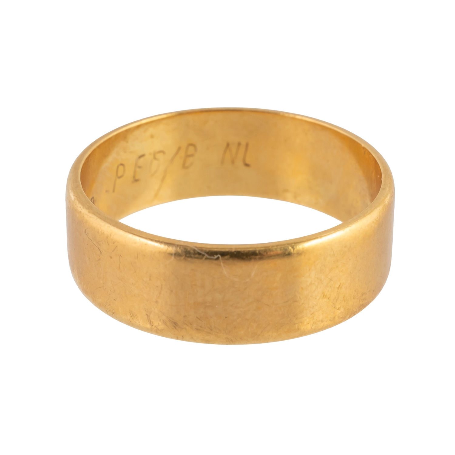 Measuring 5.7mm in width, hallmarked London 1966, size K, gross weight 4 grams