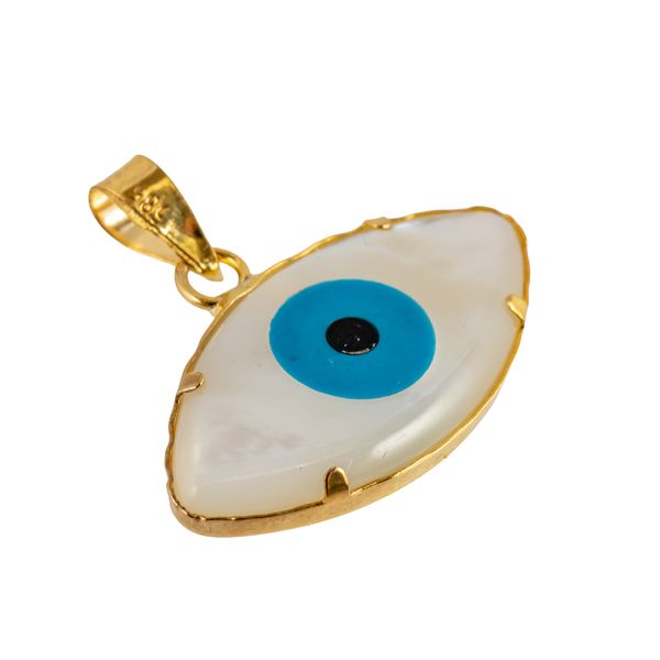 With marquise shaped mother of pearl eye in a 14ct gold mount, measuring 10.2mm x 9mm, gross weight 1.2 grams