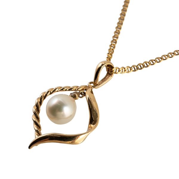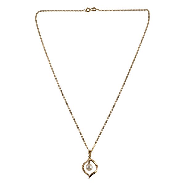 A GOLD AND CULTURED PEARL PENDANT NECKLACE