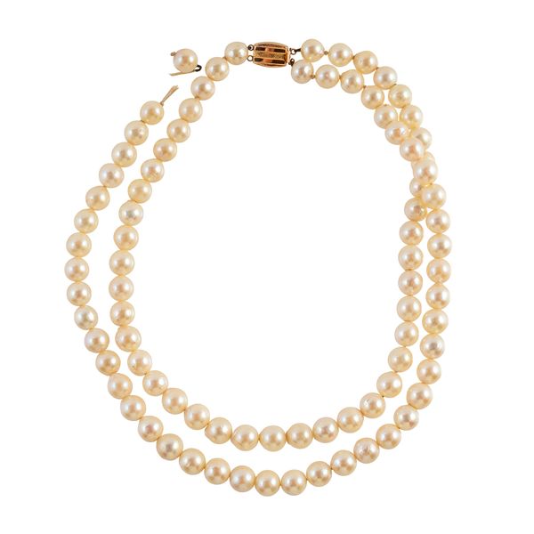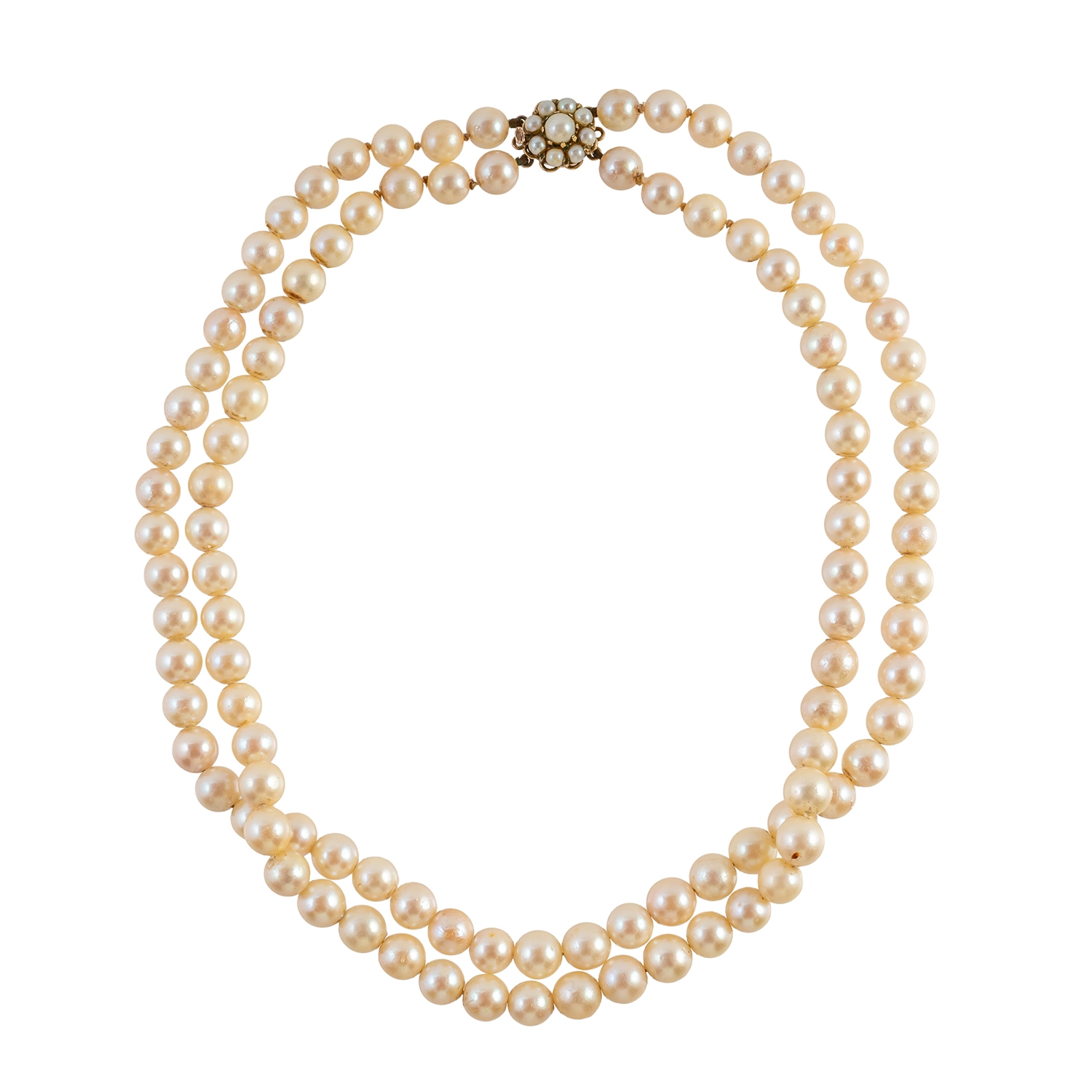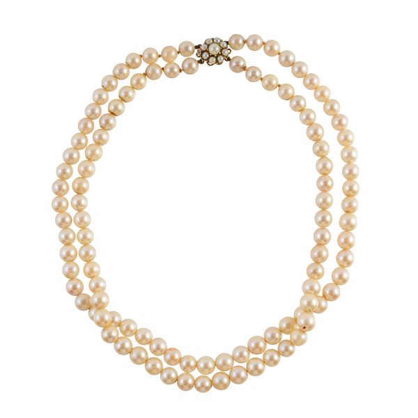 TWO DOUBLE ROW CULTURED PEARL NECKLACES (2)