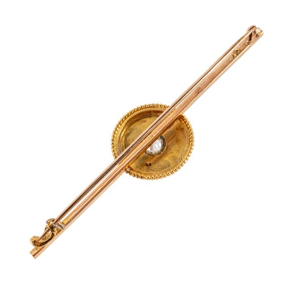A 15CT ENAMEL AND DIAMOND BAR BROOCH