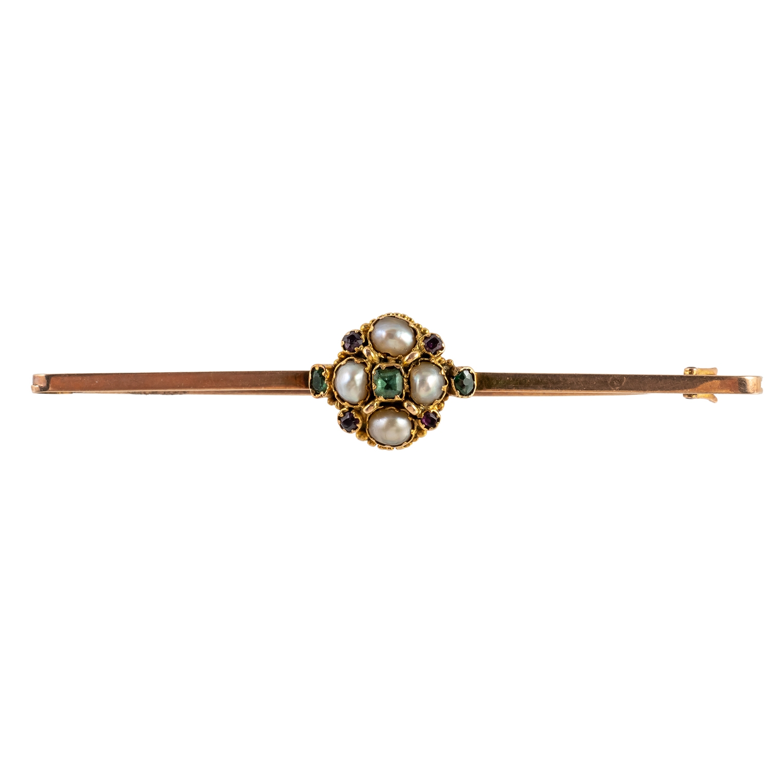 The central gem set motif associated with a 9ct gold bar fitting, measuring 6.4cm in length, gross weight 4.4 grams