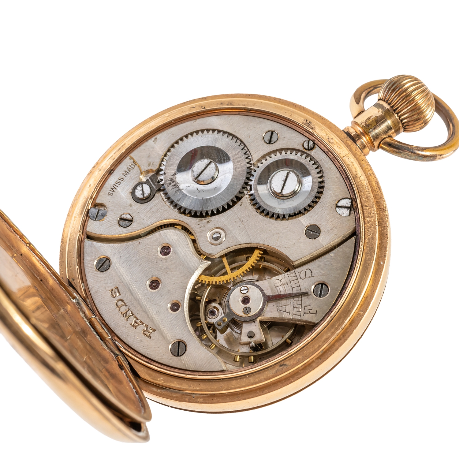 The lighter with engine turned decoration to the exterior, the underside detailed Dunhill, Made in Switzerland and later engraved 138 Z and a Rands gilt metal cased, keyless wind, openfaced gentleman's pocket watch, the jewelled lever movement detailed Swiss Made