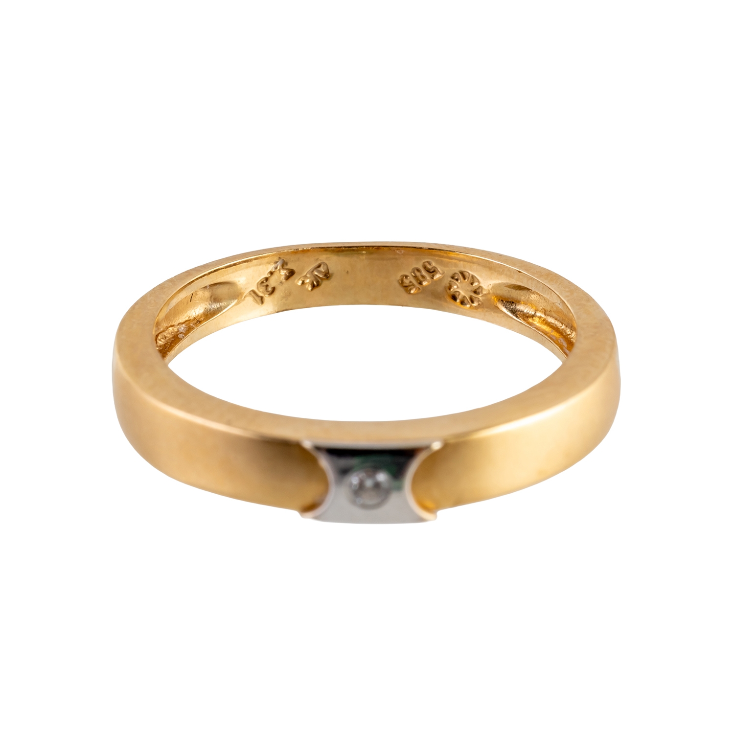 Mounted with a small diamond, the gold band half polished, in 14ct gold, size N, 2.4 grams