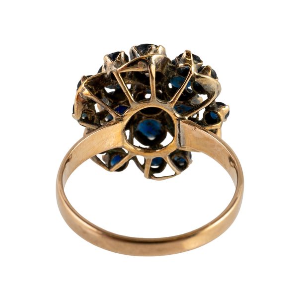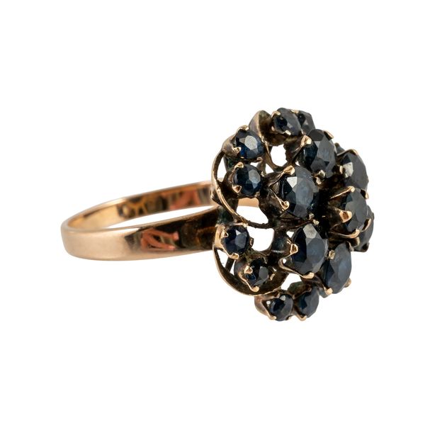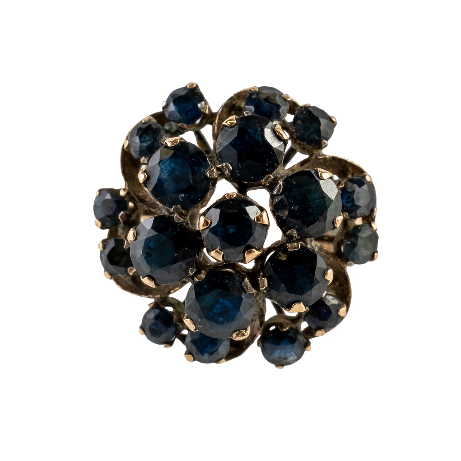 Claw set with circular cut sapphires in a raised design, unmarked, size M, gross weight 3.1 grams