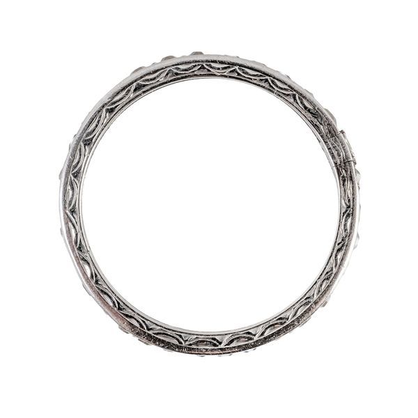 Mounted with square cut sapphires (one lacking) and old and single cut diamonds, with engraved edges in unmarked platinum, size O, gross weight 2.3 grams
