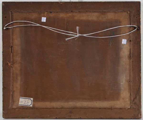 The tiger amongst jungle trees, label verso in a giltwood frame, frame 56cm x 47cm