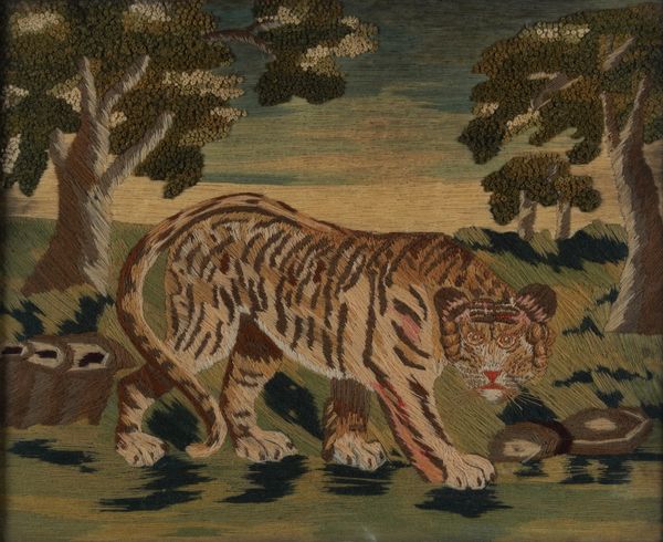 A VICTORIAN NEEDLEWORK OF A STALKING TIGER