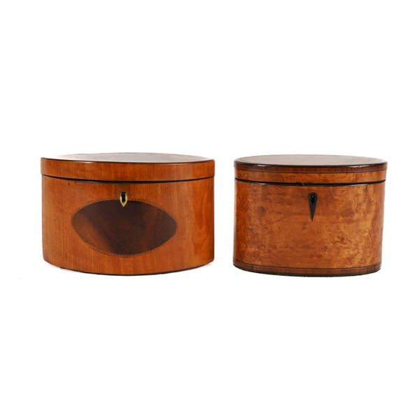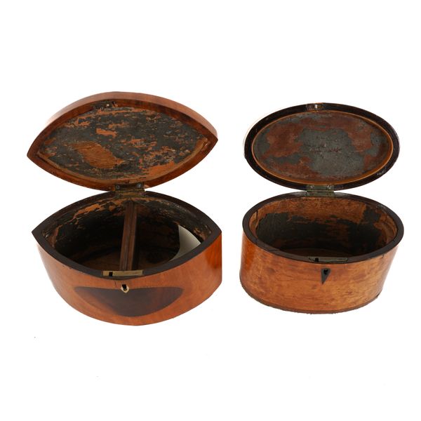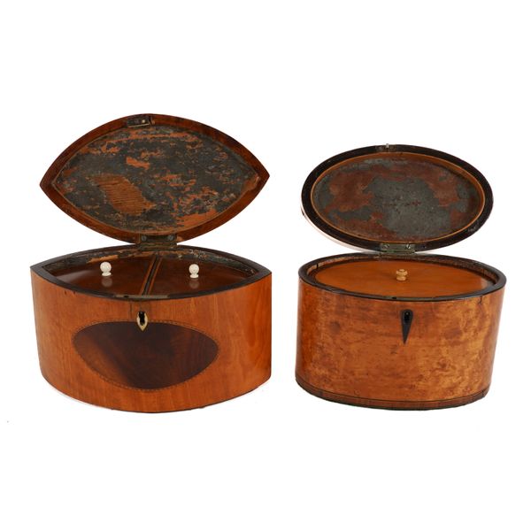A GEORGE III SATINWOOD NAVETTE SHAPED TEA CADDY (2)