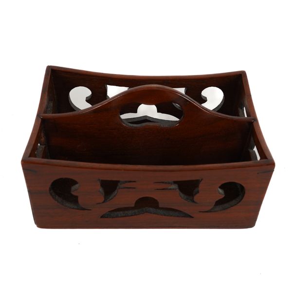 A YEWWOOD TOBACCO BOX AND SMALL FRET MAHOGANY CUTLERY TRAY (2)