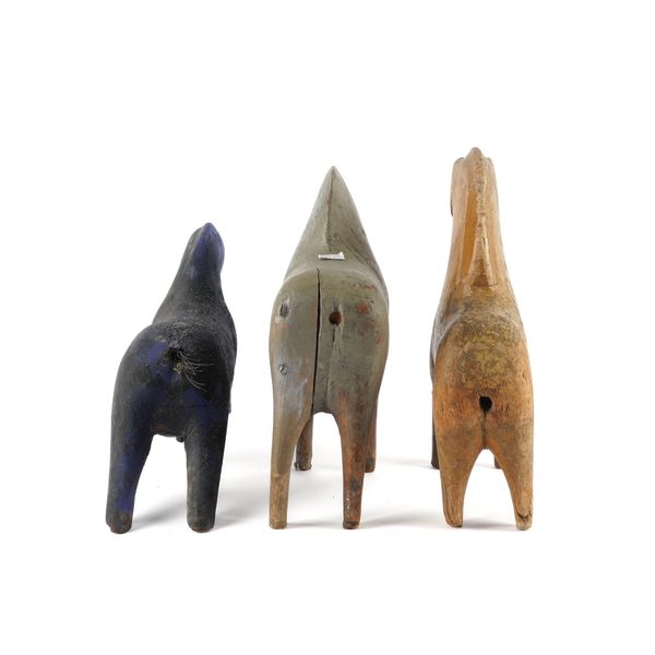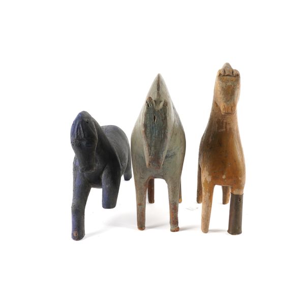 20th Century The horses in minimalist stylized form, painted in blue, grey and brown, the tallest 25.5cm high