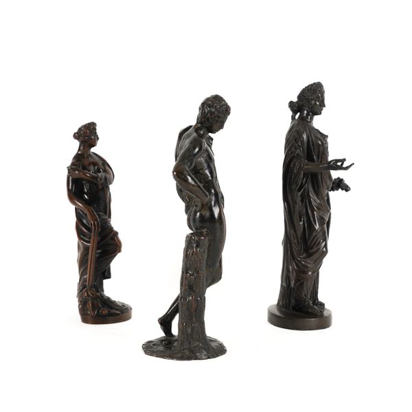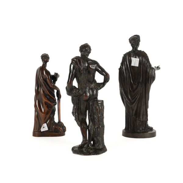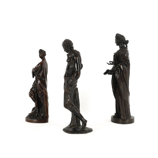 OF GRAND TOUR INTEREST: A GROUP OF THREE PATINATED BRONZE FIGURES OF GODS AND GODDESSES AFTER THE ANTIQUE (3)