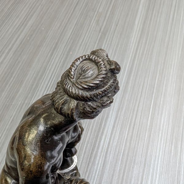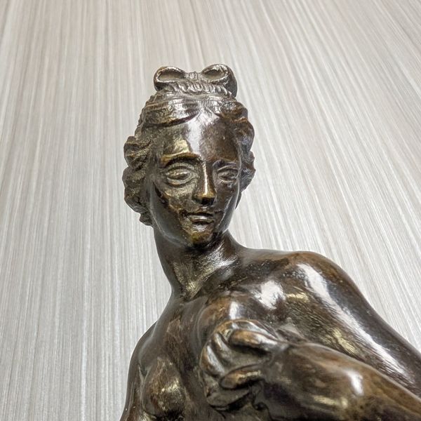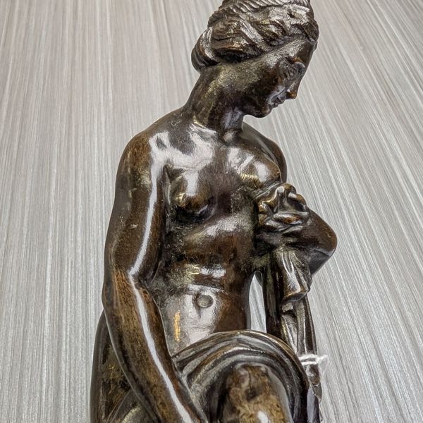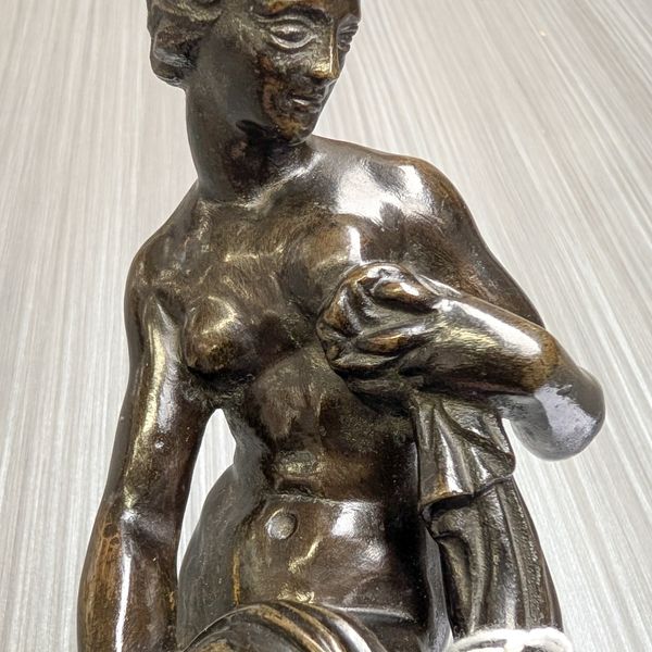 Giambologna was one of the most influential sculptors of the late 16th and early 17th centuries. His style became well known throughout Europe, disseminated through his small statuette bronzes and under the patronage of the Medici family in Florence, although he originated from Flanders. Giambologna was greatly influenced by antique forms, having studied these in Rome from 1550-1553. In the body of work attributed to him, the figure figure of Venus bathing was widely used as means to explore the 'figura serpentinata'. This Mannerist composition technique, characterised by a spiral twisting human figure, creates a sense of dynamic motion that encourages views to observed from all angles.