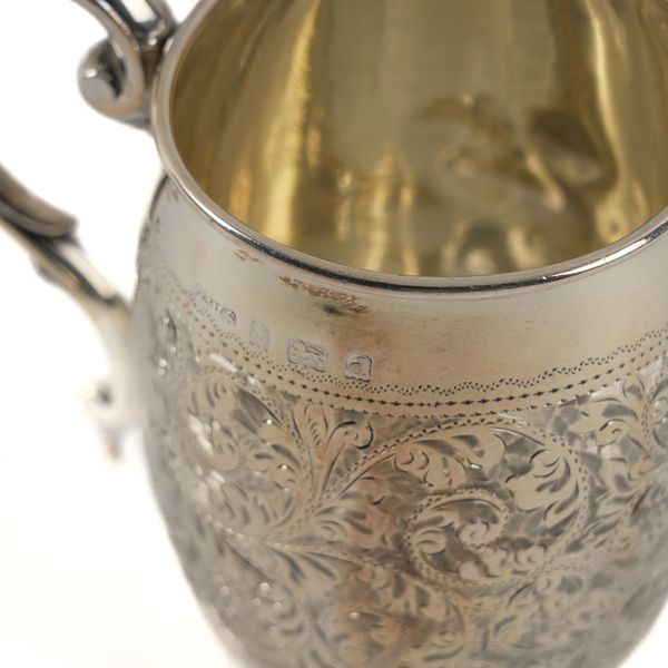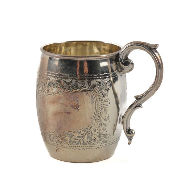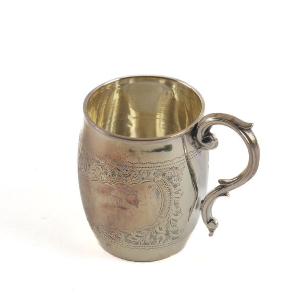 A SILVER CHRISTENING MUG AND A SILVER TABLE CIGARETTE BOX (3)