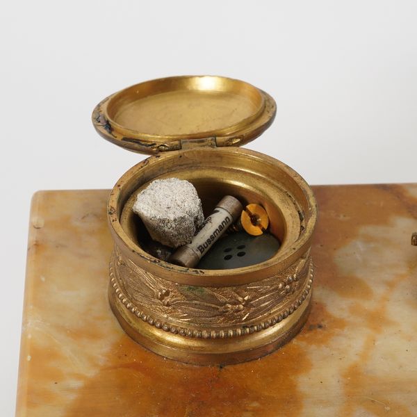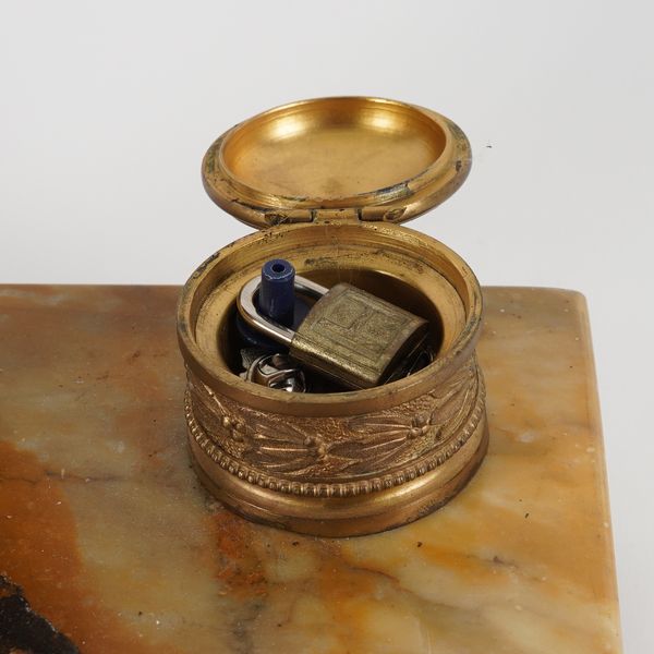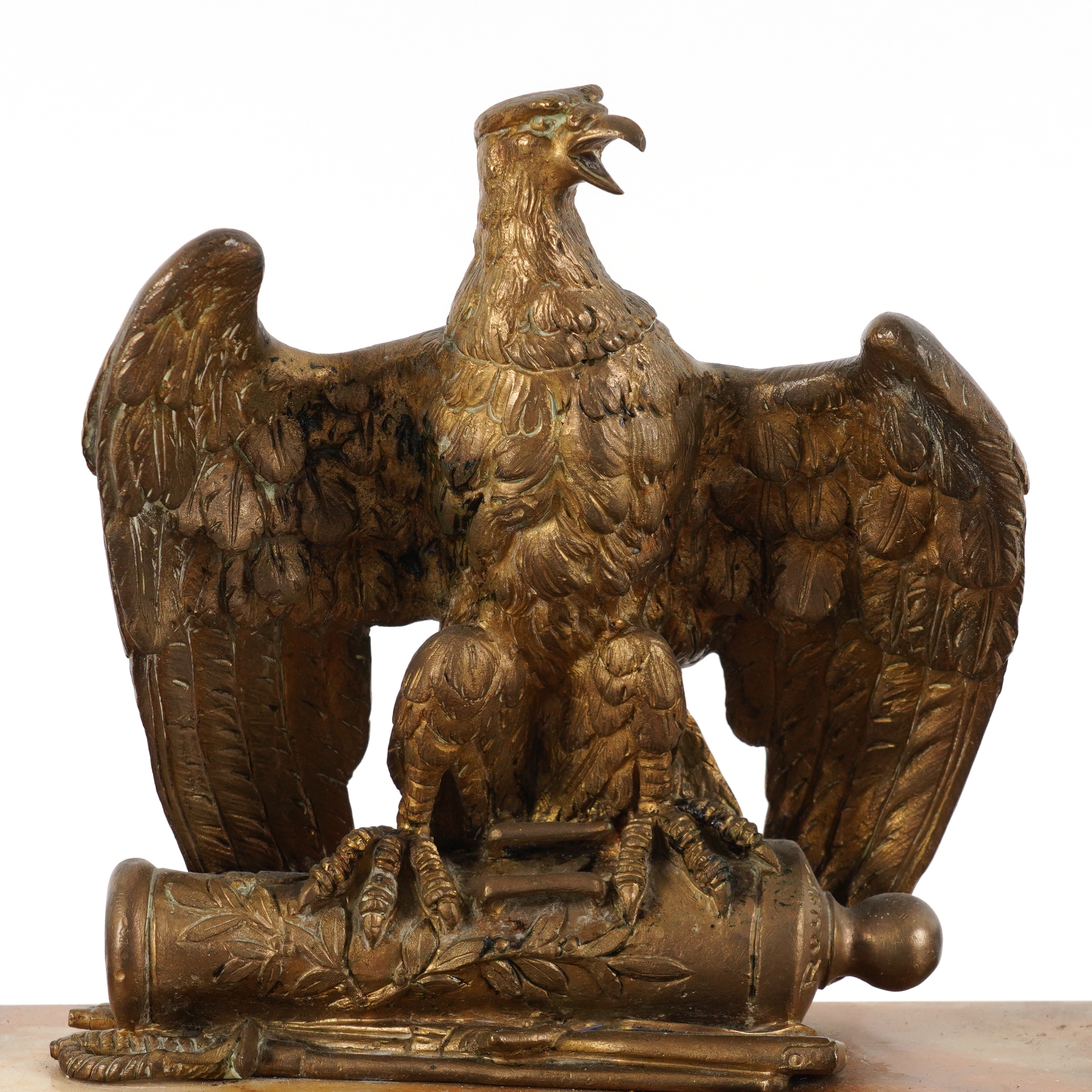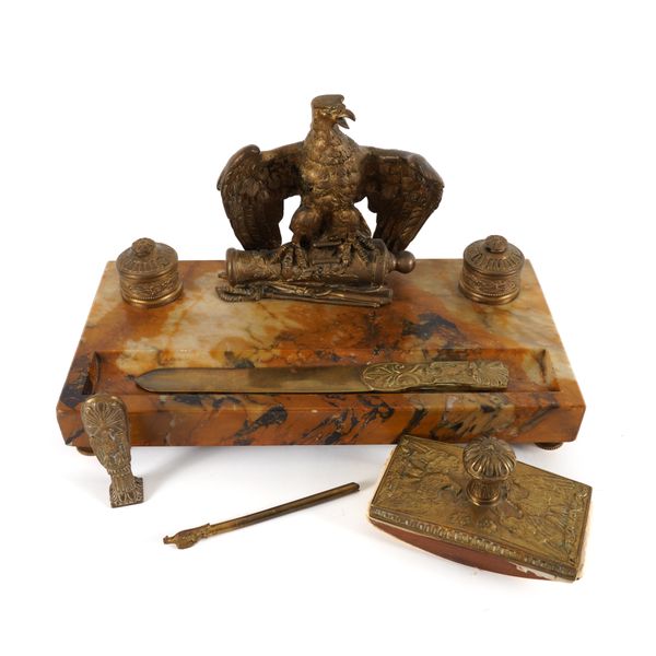 A FRENCH GILT BRONZE MOUNTED SIENA MARBLE INKSTAND SURMOUNTED BY AN EAGLE (5)