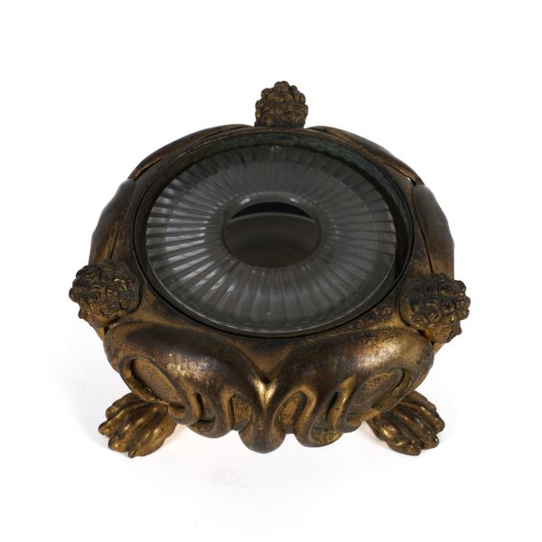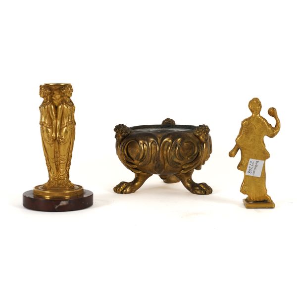AN ORMOLU CARYATID BASE OF THE THREE GRACES AND ANOTHER GILT-BRONZE STATUETTE (3)