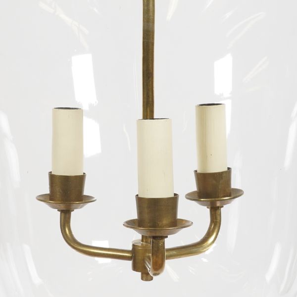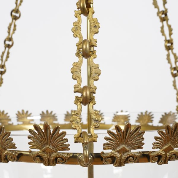 A REGENCY STYLE GILT-METAL MOUNTED GLASS HANING LANTERN