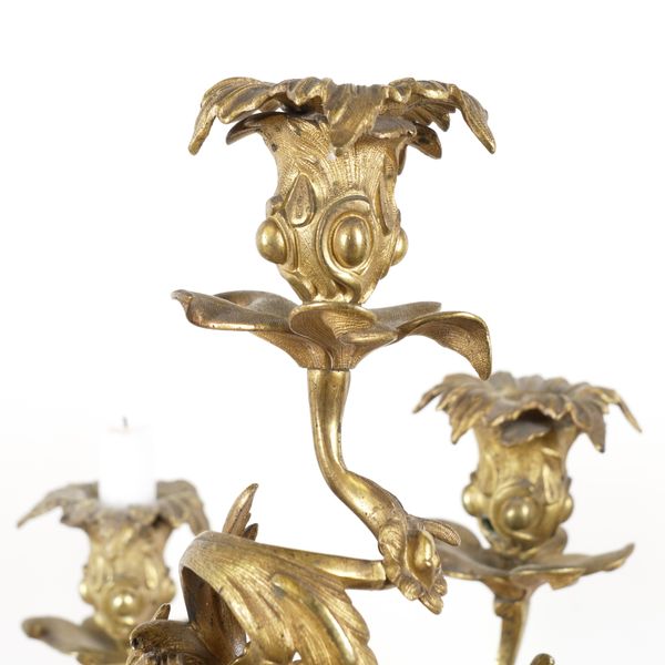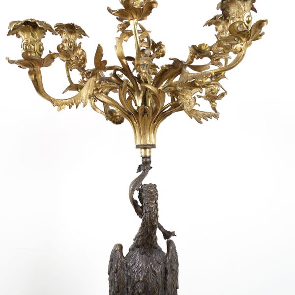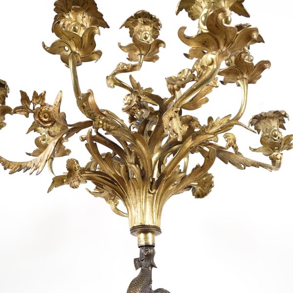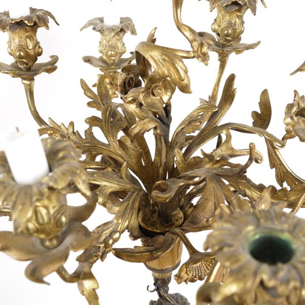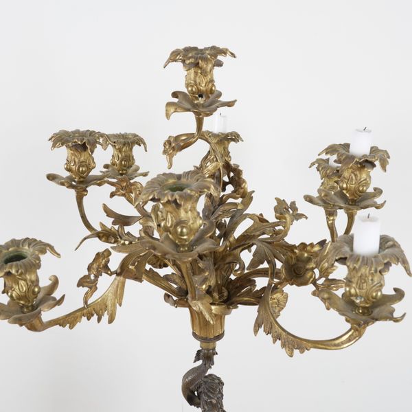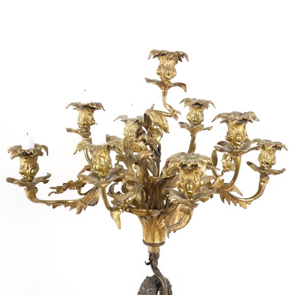 A WILLIAM IV PATINATED BRONZE AND ORMOLU NINE LIGHT CANDELABRUM